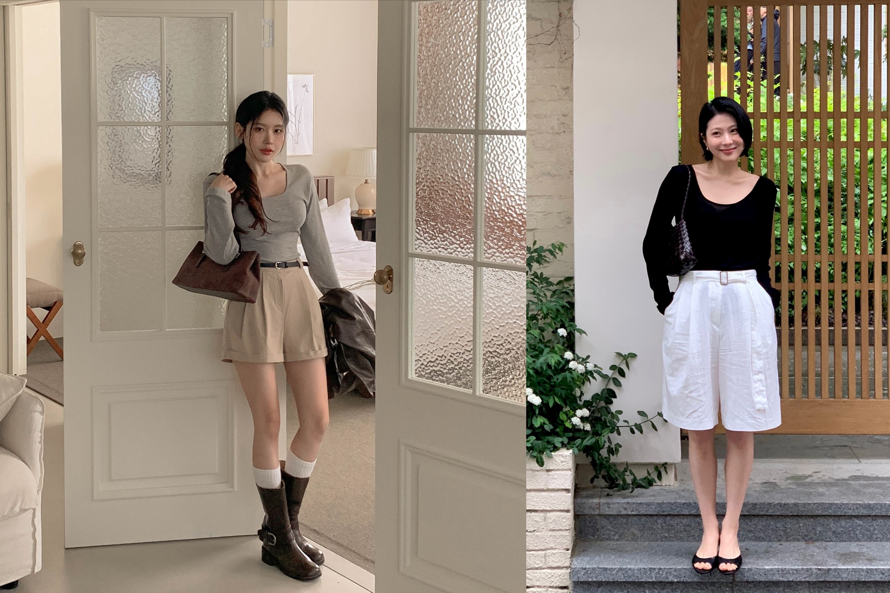 Công thức "trên dài, dưới ngắn" luôn là một nước cờ thời trang thông minh. Một chiếc áo thun dài tay oversized, phối cùng một chiếc quần short da hoặc short denim sẽ tạo ra một vẻ ngoài vừa thoải mái, vừa cực kỳ thu hút. Đây là bản phối hoàn hảo cho những ngày dạo phố, thể hiện một cá tính năng động và không ngại khác biệt.