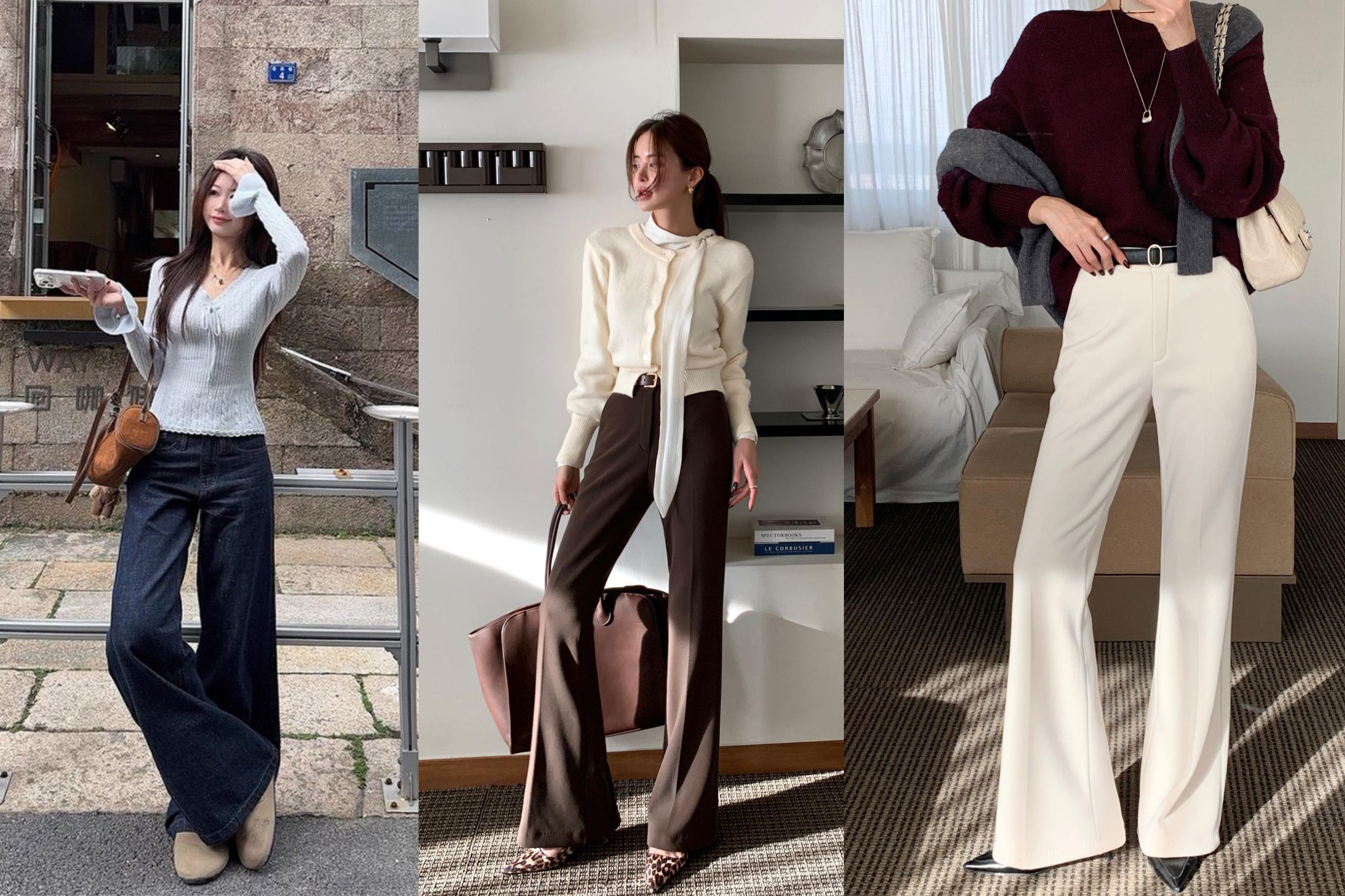 2. Áo Len Ôm và Quần Âu Ống Rộng