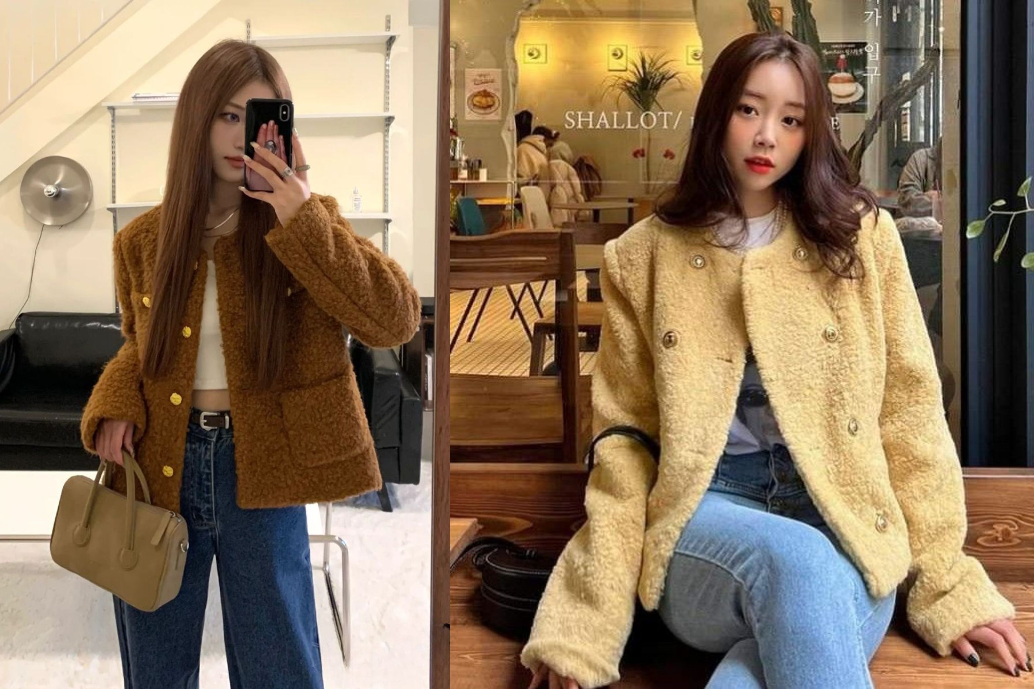 Hãy quên đi những chiếc áo khoác dạ thông thường. Một chiếc áo khoác với chất liệu lông mềm mại, phom dáng cổ tròn tối giản sẽ là một cú "twist" đầy thú vị. Nó mang lại vẻ sang chảnh nhưng lại cực kỳ trẻ trung. Hãy kết hợp nó cùng một chiếc quần jeans rách gối hoặc một chiếc chân váy da để tạo ra sự tương phản phong cách.