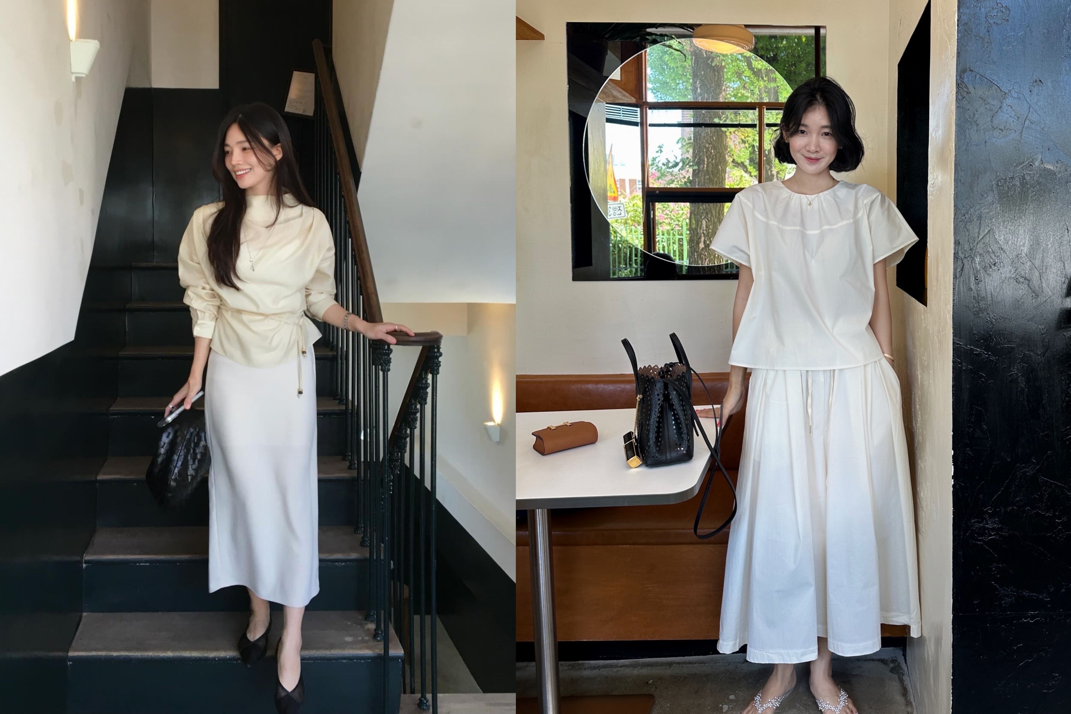 1. The Soft Elegance – Áo Sáng Màu & Chân Váy