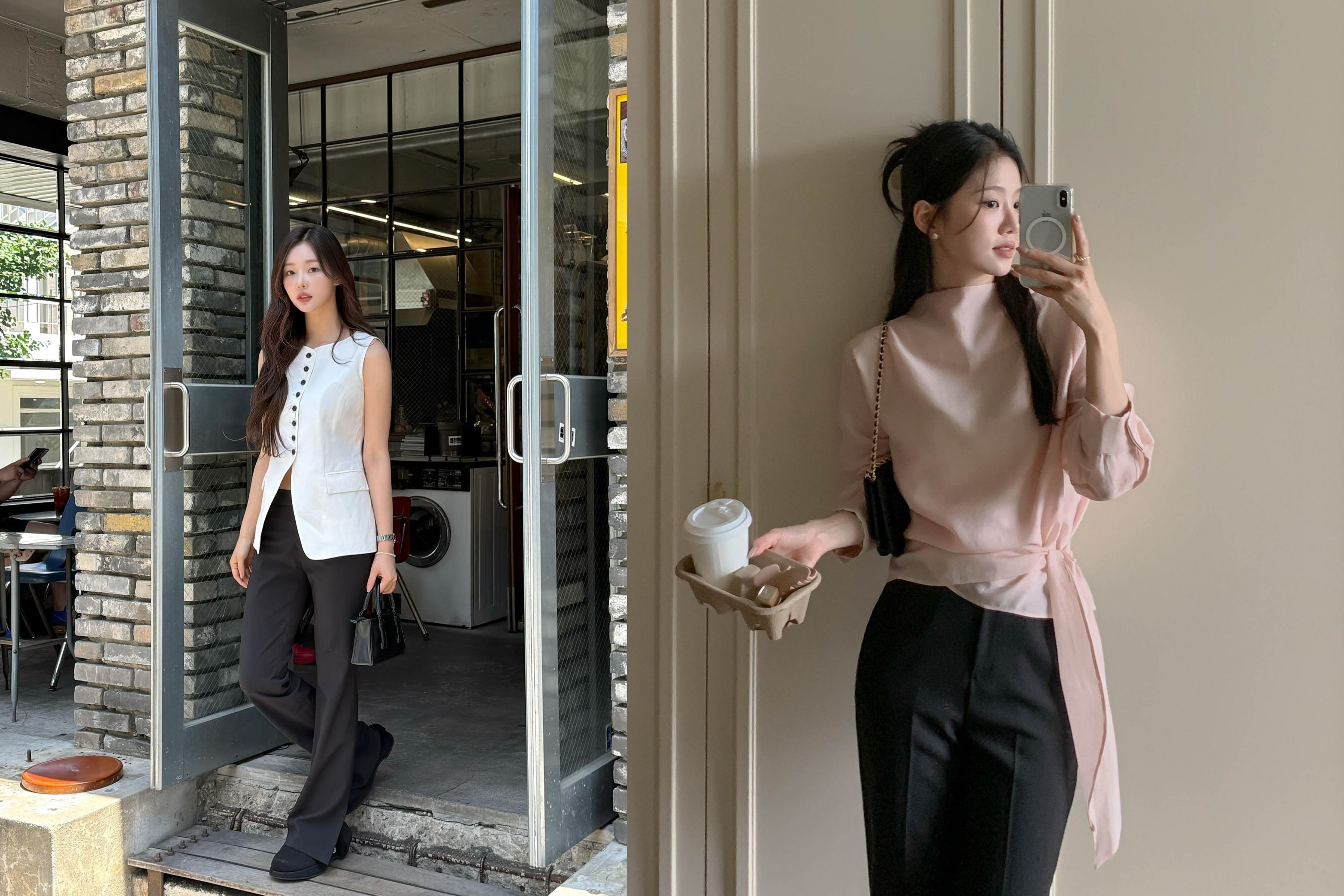 Sự kết hợp giữa Áo Blouse Lụa màu Kem hoặc Hồng Phấn với Chân váy Bút chì là chuẩn mực của sự chuyên nghiệp. Gam màu sáng làm mềm đi những đường cắt may sắc sảo, tạo nên vẻ đẹp nữ tính đầy quyền lực.