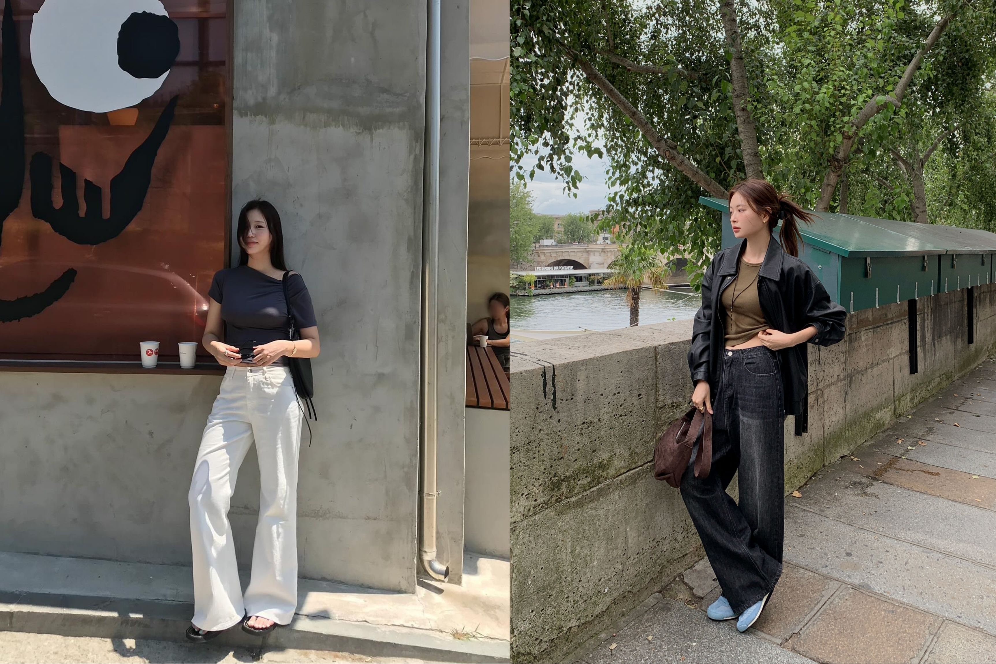 Áo thun trơn màu trung tính (Trắng, Đen, Be) phối cùng quần ống rộng tạo nên phong cách "Effortless Chic" (Đẹp không gắng gượng). Đây là lựa chọn lý tưởng cho những ngày cuối tuần thư thái nhưng vẫn đầy khí chất.