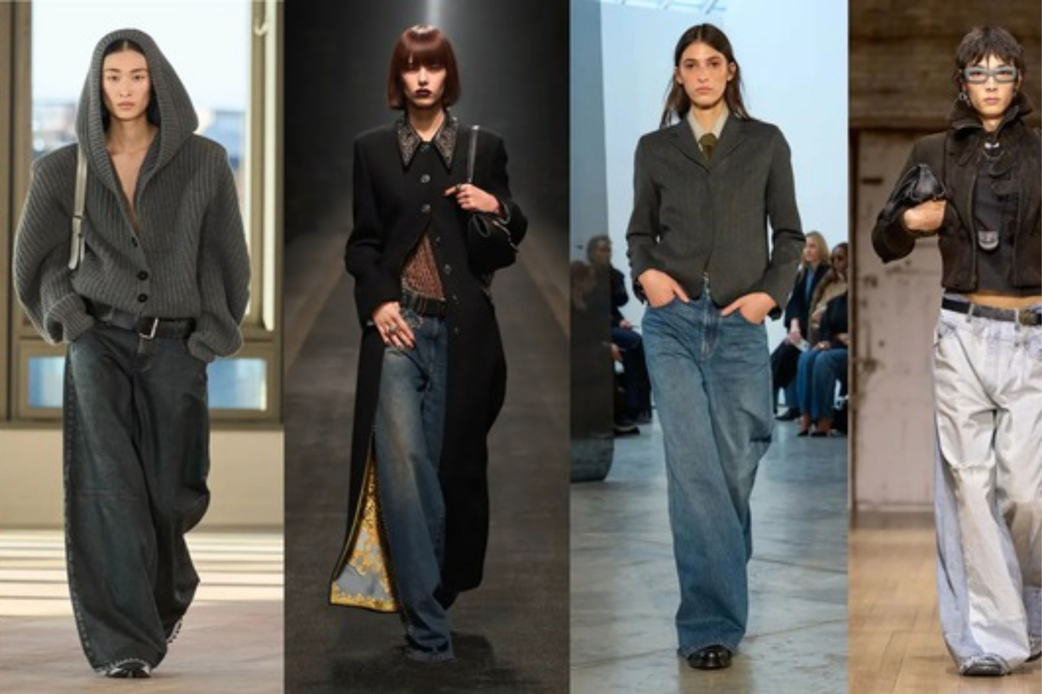 • The Sophisticated Contrast: Kết hợp quần cạp trễ ống rộng với một chiếc áo Blouse lụa (Silk Blouse) ôm nhẹ hoặc áo len Cashmere siêu mỏng (Fine Knitwear). Sự đối lập giữa Denim bụi bặm và chất liệu xa xỉ tạo nên chiều sâu cho trang phục.