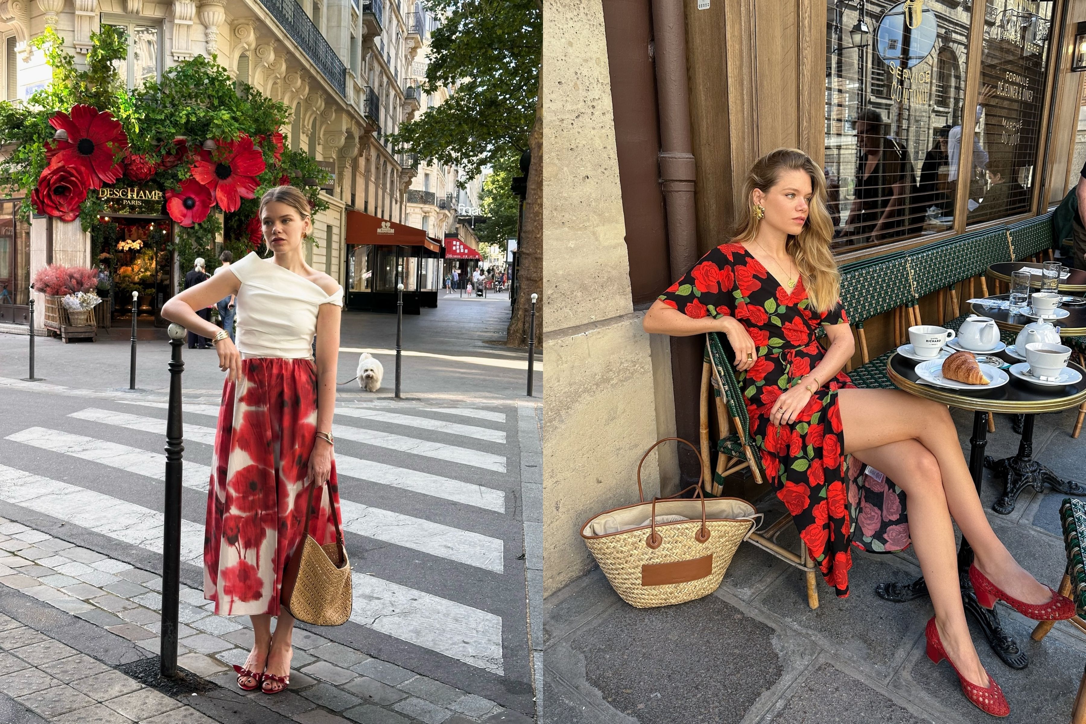 Trong những kỳ nghỉ dưỡng, váy họa tiết (Printed Dress) là item không thể thiếu. Điểm khác biệt của phong cách Pháp là sự lựa chọn họa tiết: nhỏ nhắn, tinh xảo (Micro-prints) trên nền vải lụa hoặc voan cao cấp.