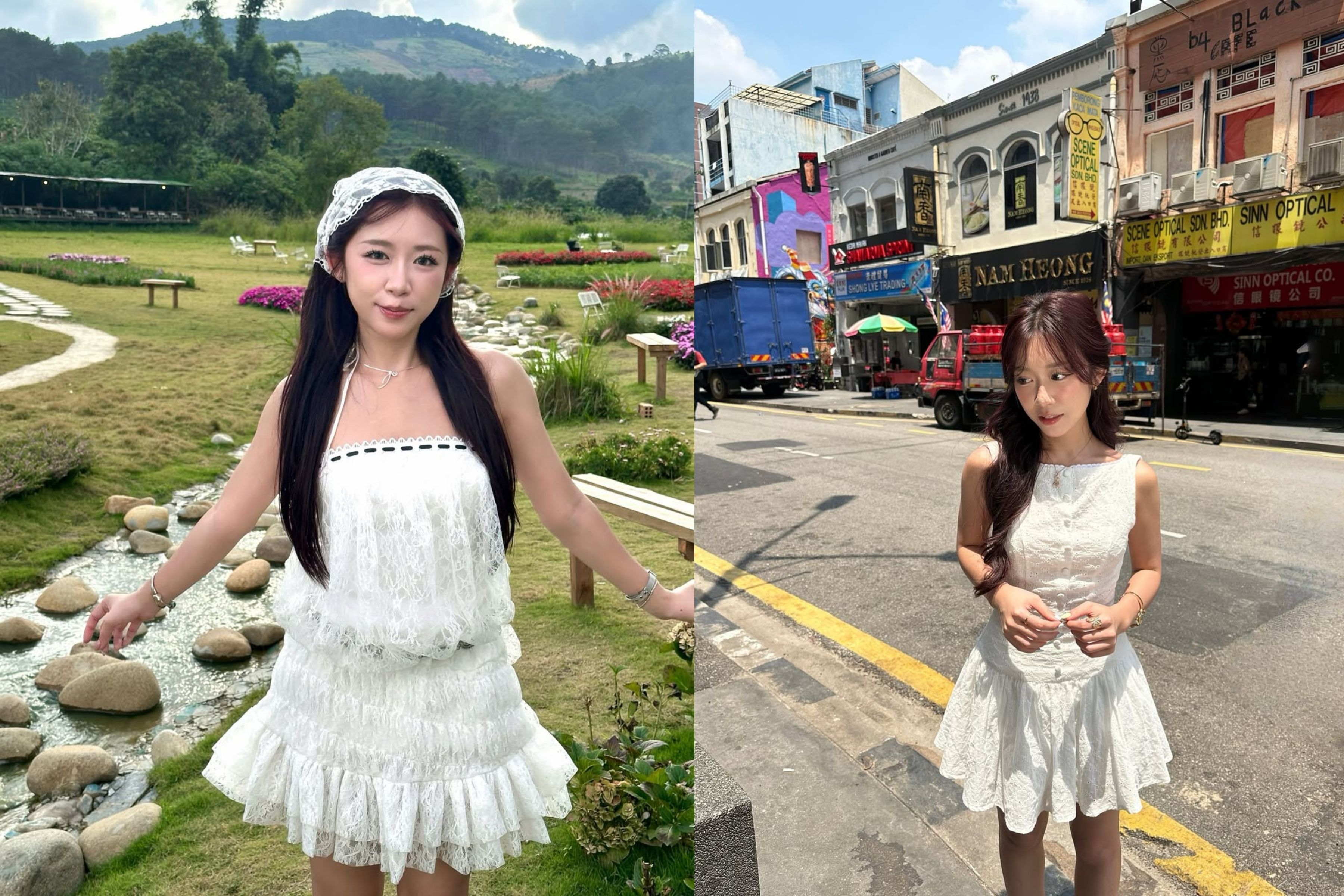Hương Thù là bậc thầy trong việc ứng dụng phong cách Monochrome (Đơn sắc), đặc biệt là sắc Trắng (White). Đây là một hiệu ứng thị giác (Optical Illusion) cực kỳ thông minh.