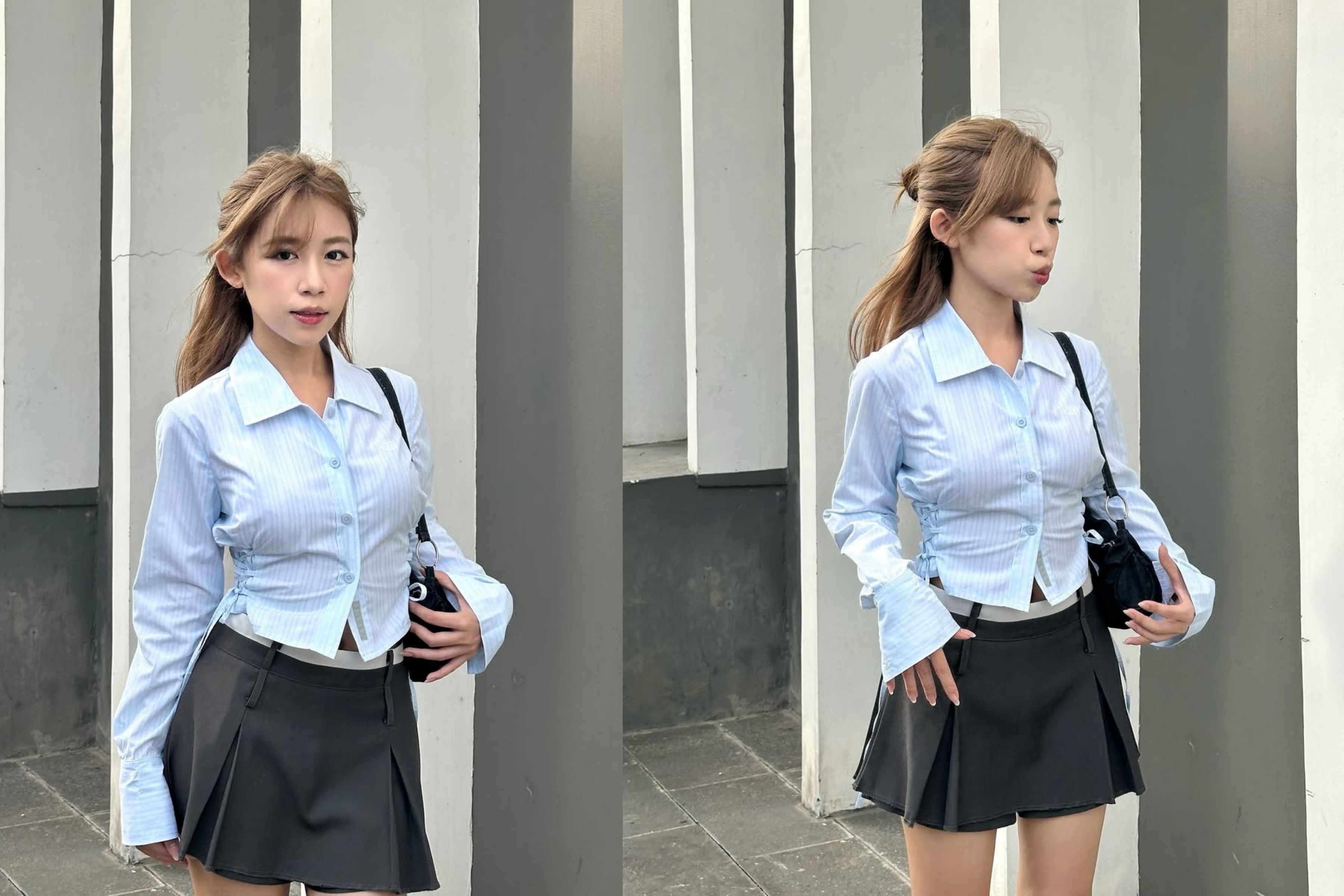 Với phụ nữ Petite, độ dài của trang phục quyết định sự thanh thoát. Chân váy ngắn (Micro Mini Skirt) là "vũ khí" tối thượng của Hương Thù.