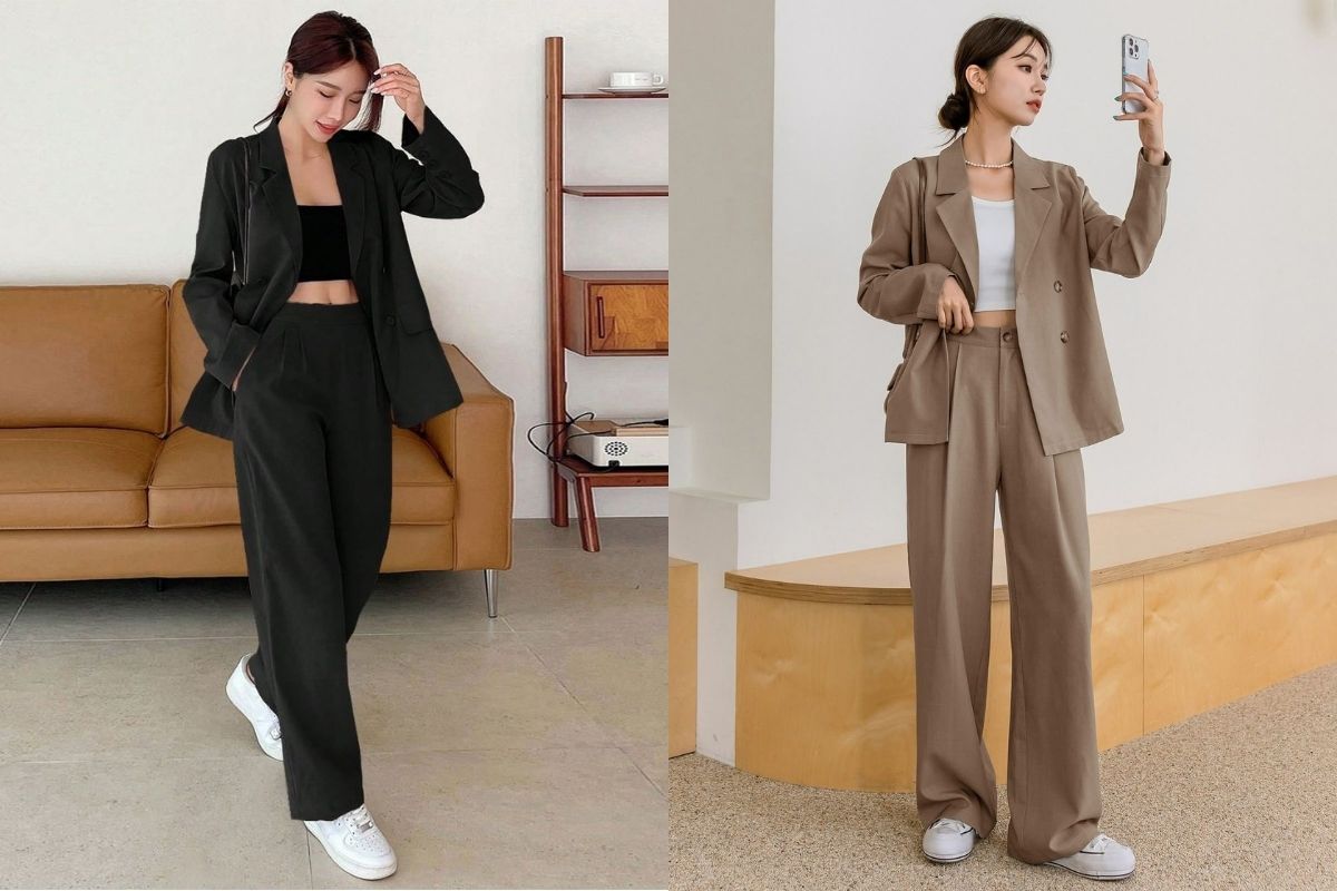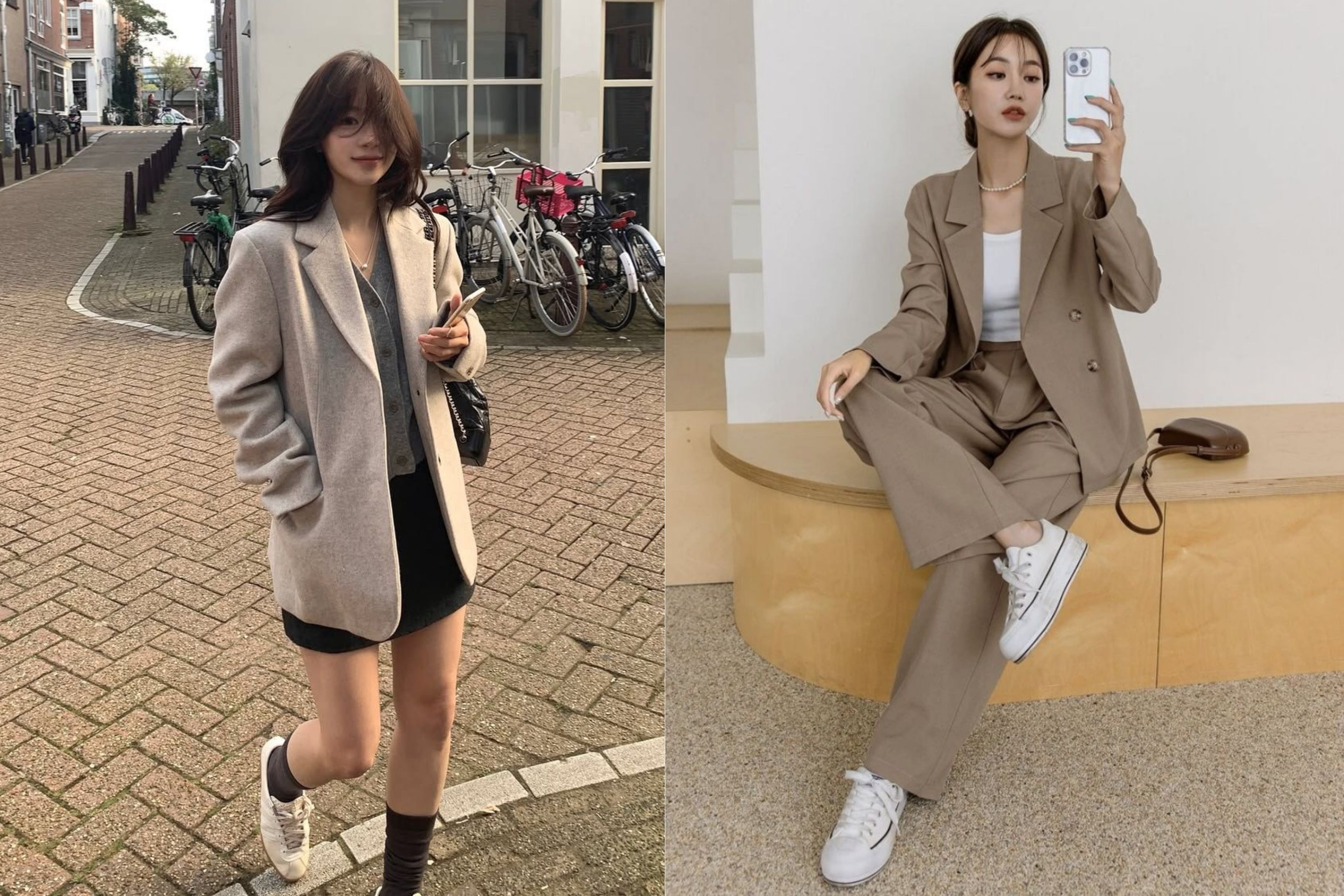 Hãy tạm cất những đôi cao gót quen thuộc. Xu hướng kết hợp suit với sneakers đã trở thành một biểu tượng của sự sành điệu hiện đại. Một đôi sneaker trắng tối giản sẽ ngay lập tức "trẻ hóa" bộ suit, mang lại vẻ ngoài năng động, thoải mái mà không hề làm mất đi sự chỉn chu. Đây là công thức hoàn hảo cho những ngày làm việc cần di chuyển nhiều nhưng vẫn muốn giữ vững phong độ thời trang.