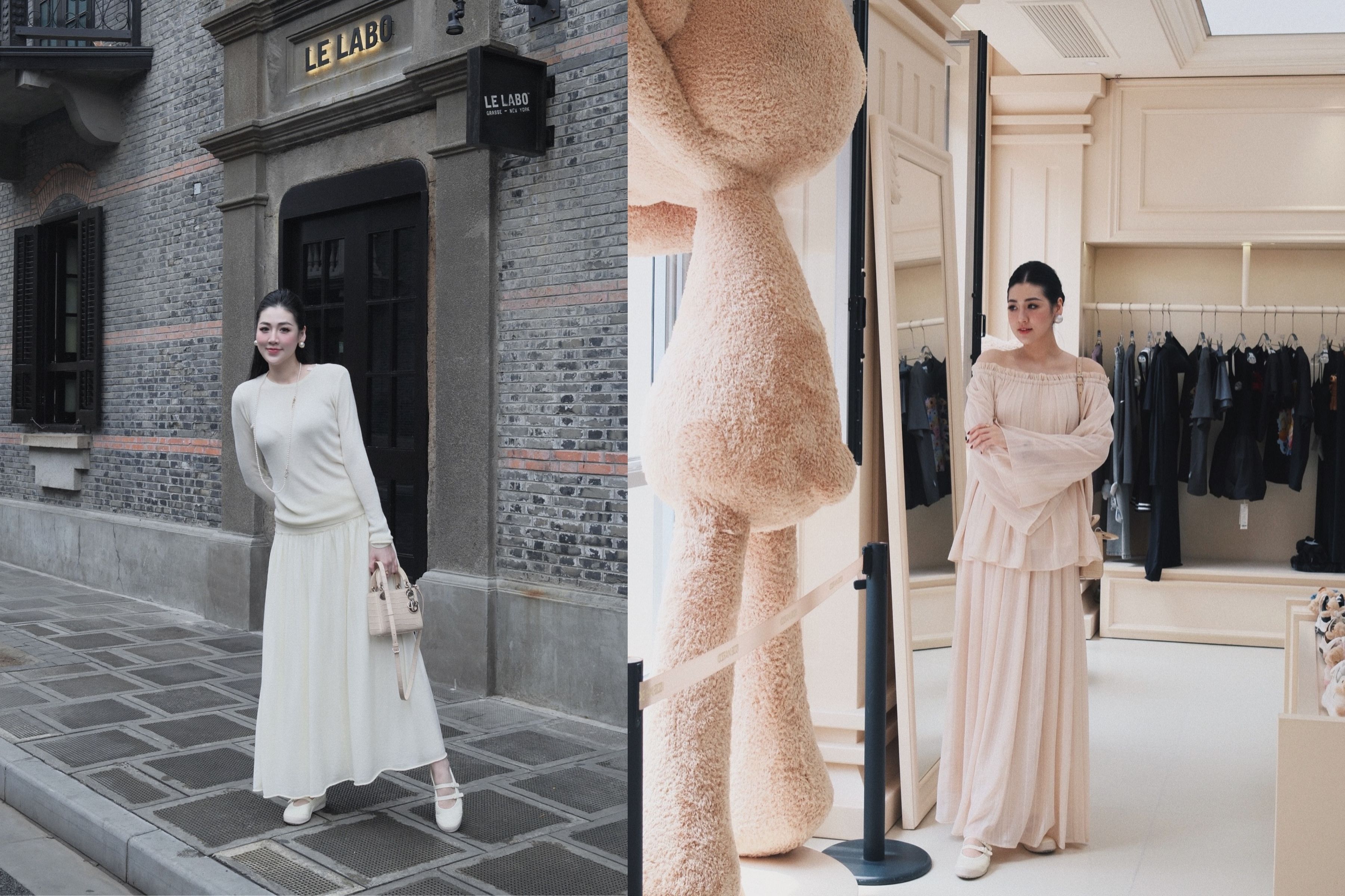 Phụ kiện đi kèm như giày Mary Jane hay túi xách ngọc trai được lựa chọn kỹ lưỡng để tôn vinh vẻ đẹp cổ điển, quý phái.