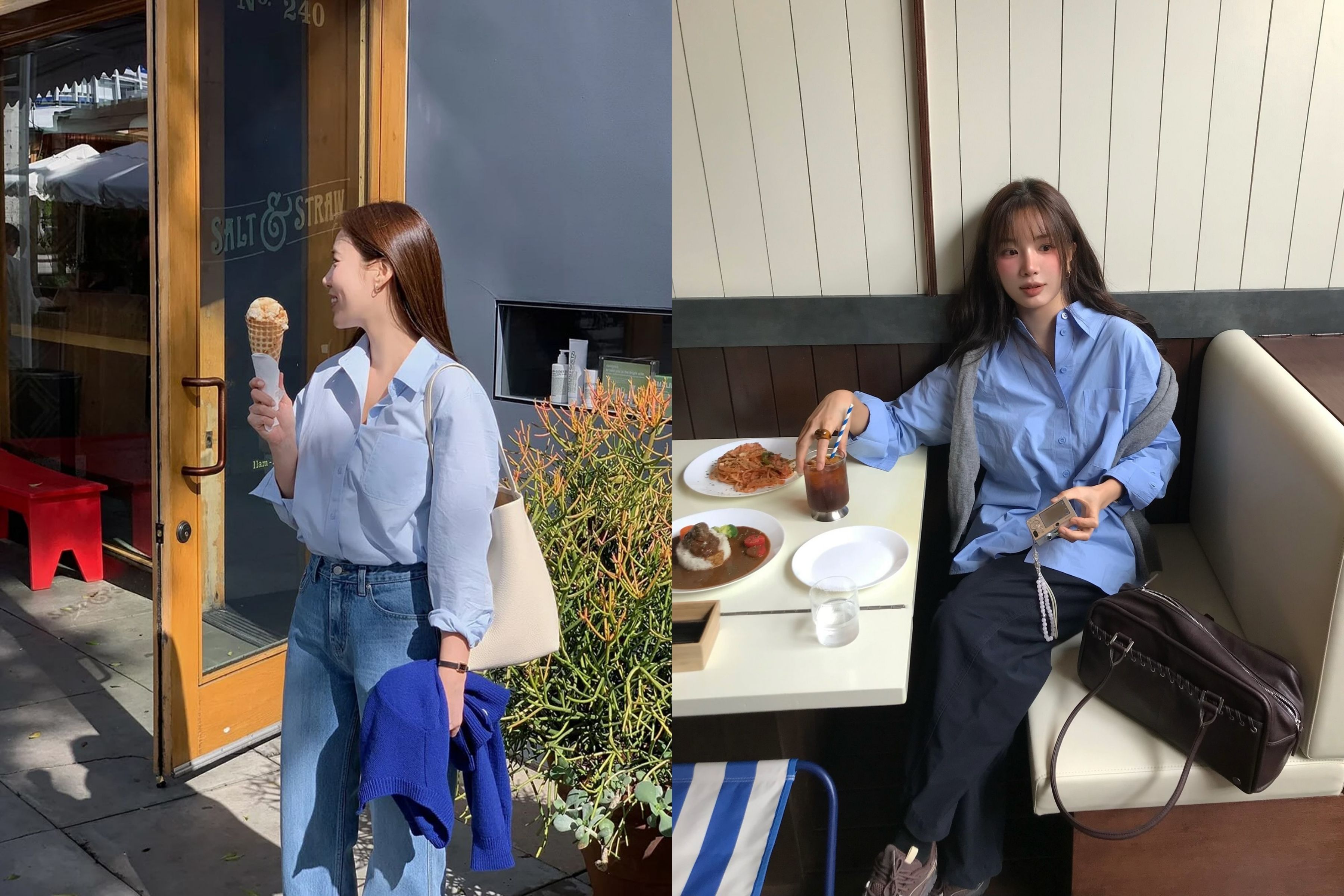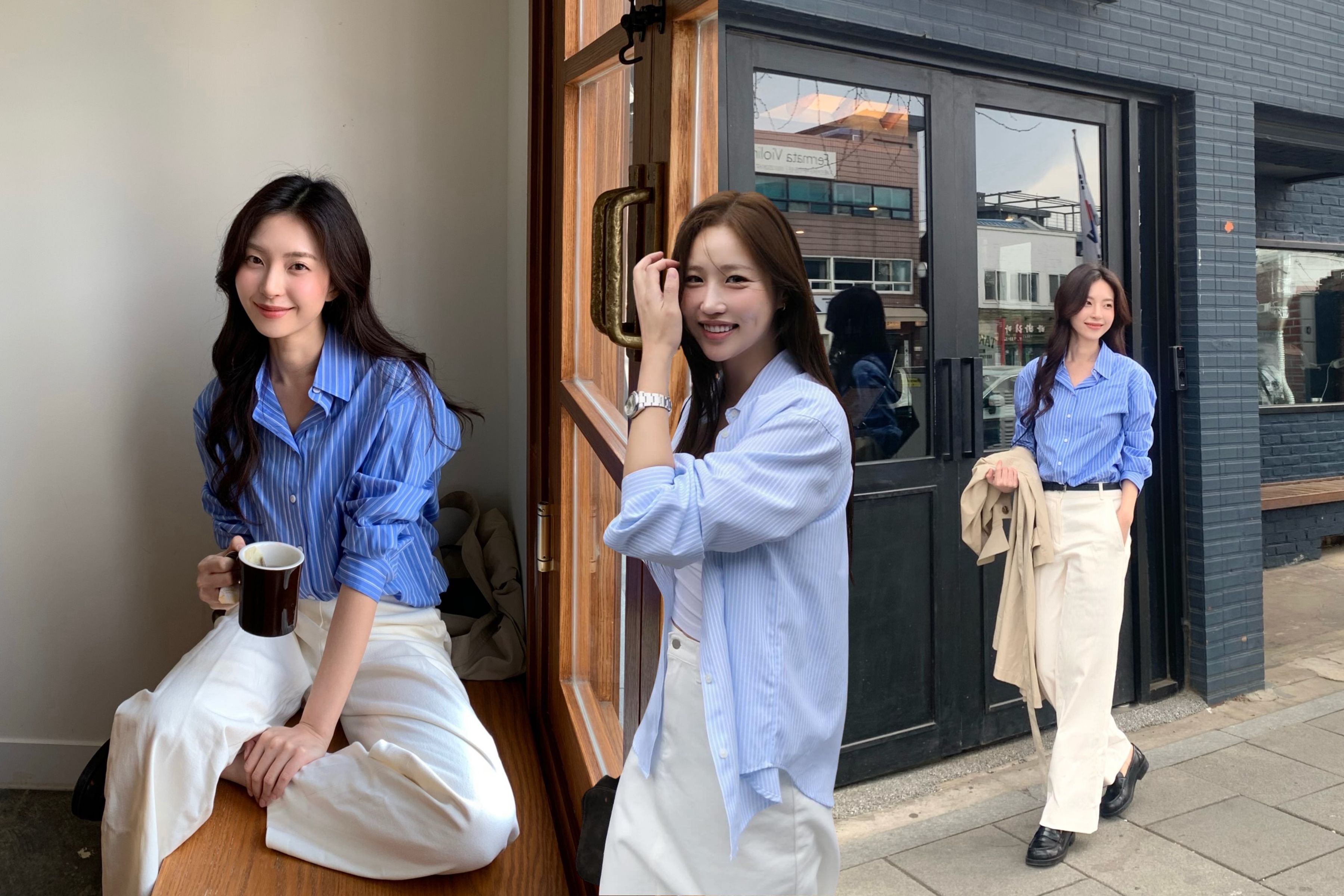 Những đường sọc dọc kiến tạo trục thị giác thanh thoát, mang lại cảm giác năng động, dứt khoát. Bảng màu Trắng - Xanh Navy hay Trắng - Nâu Camel phối cùng quần âu ống rộng (Wide-leg Trousers) là bản phối kinh điển của phong cách "Smart-Casual" thượng lưu.