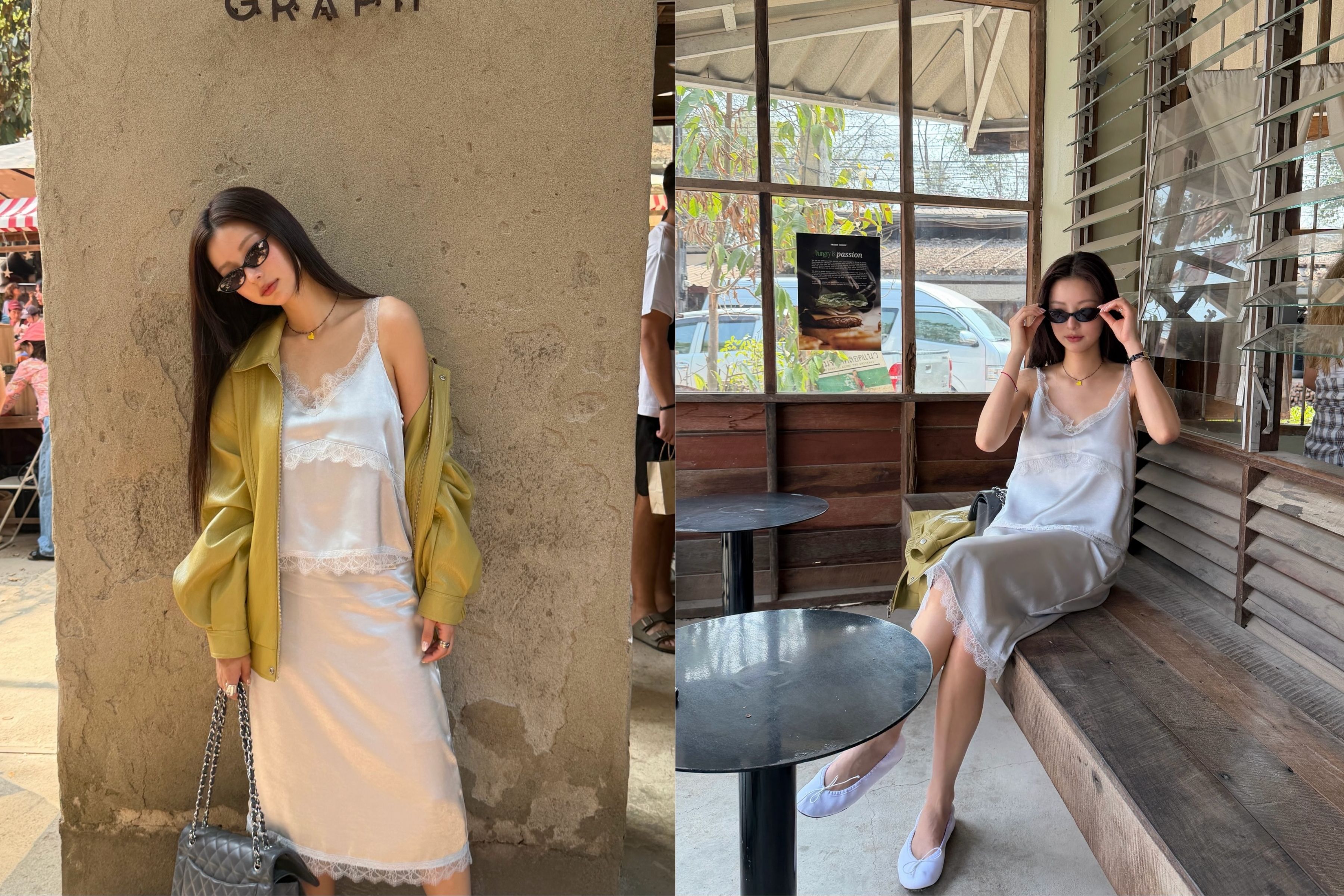 Thiết kế cắt xéo vải (Bias-cut) giúp chiếc đầm ôm hờ hững đường cong mà không gây bết dính. Một chiếc váy lụa màu Champagne hay Olive từ Posh, khoác hờ chiếc áo sơ mi voan kính, là tất cả những gì bạn cần cho một buổi tối mùa hè lãng mạn, đậm chất điện ảnh.