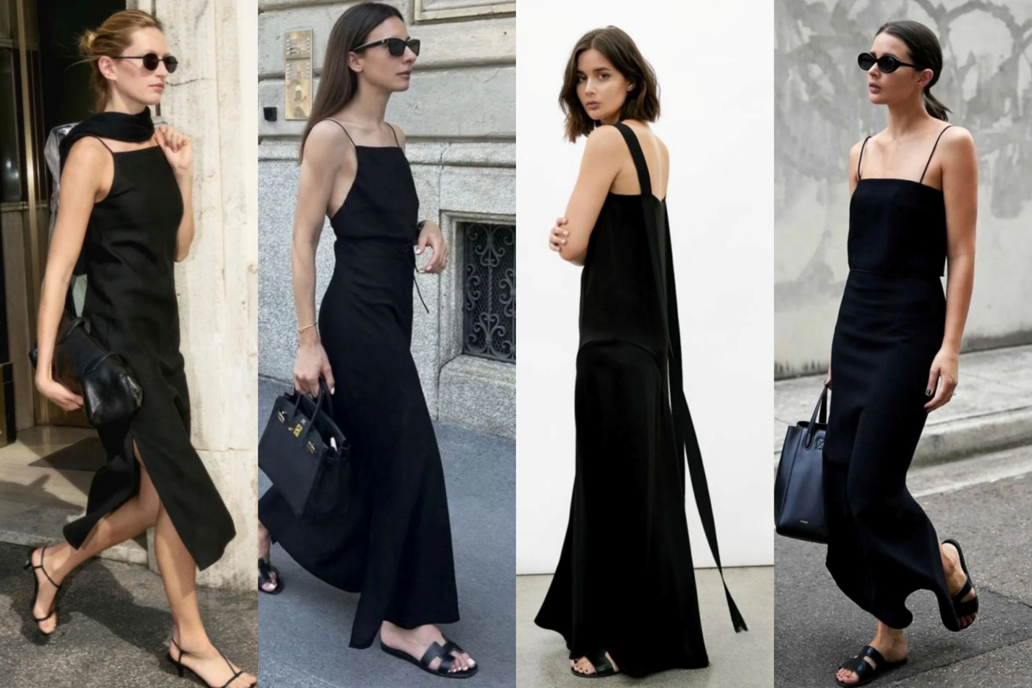 Để hoàn thiện diện mạo "Old Money" cùng chiếc đầm đen, phụ kiện đi kèm phải tuân thủ nguyên tắc tối giản (Minimalism). Một chiếc túi xách da thật không logo (Unbranded Structured Bag), đôi Sandal quai mảnh (Strappy Sandals) gót thấp và một chiếc kính râm đen cổ điển. Mọi chi tiết đều phục vụ một mục đích duy nhất: Tôn vinh vẻ đẹp tự nhiên, thanh lịch và thần thái tự tin của chủ nhân.