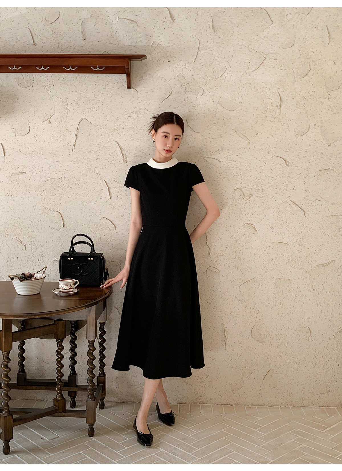 Đầm đen xòe công sở phối màu tay lỡ