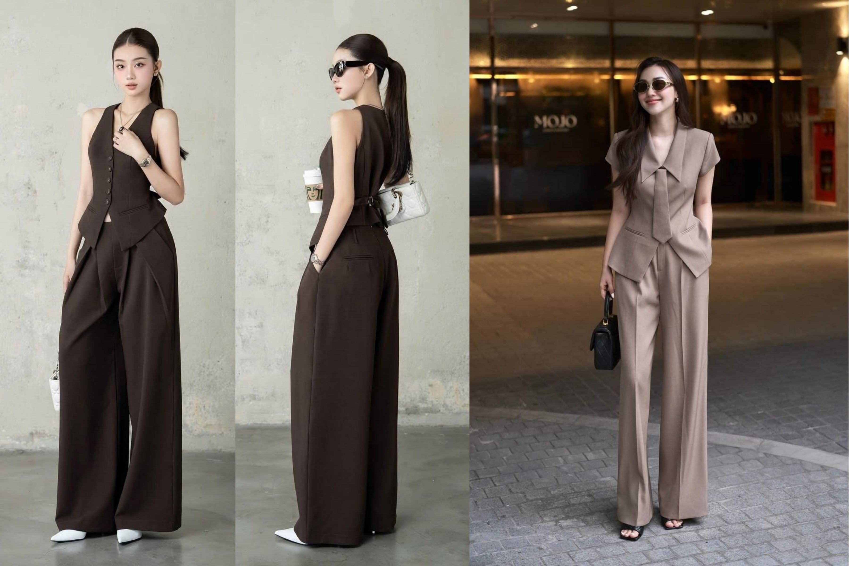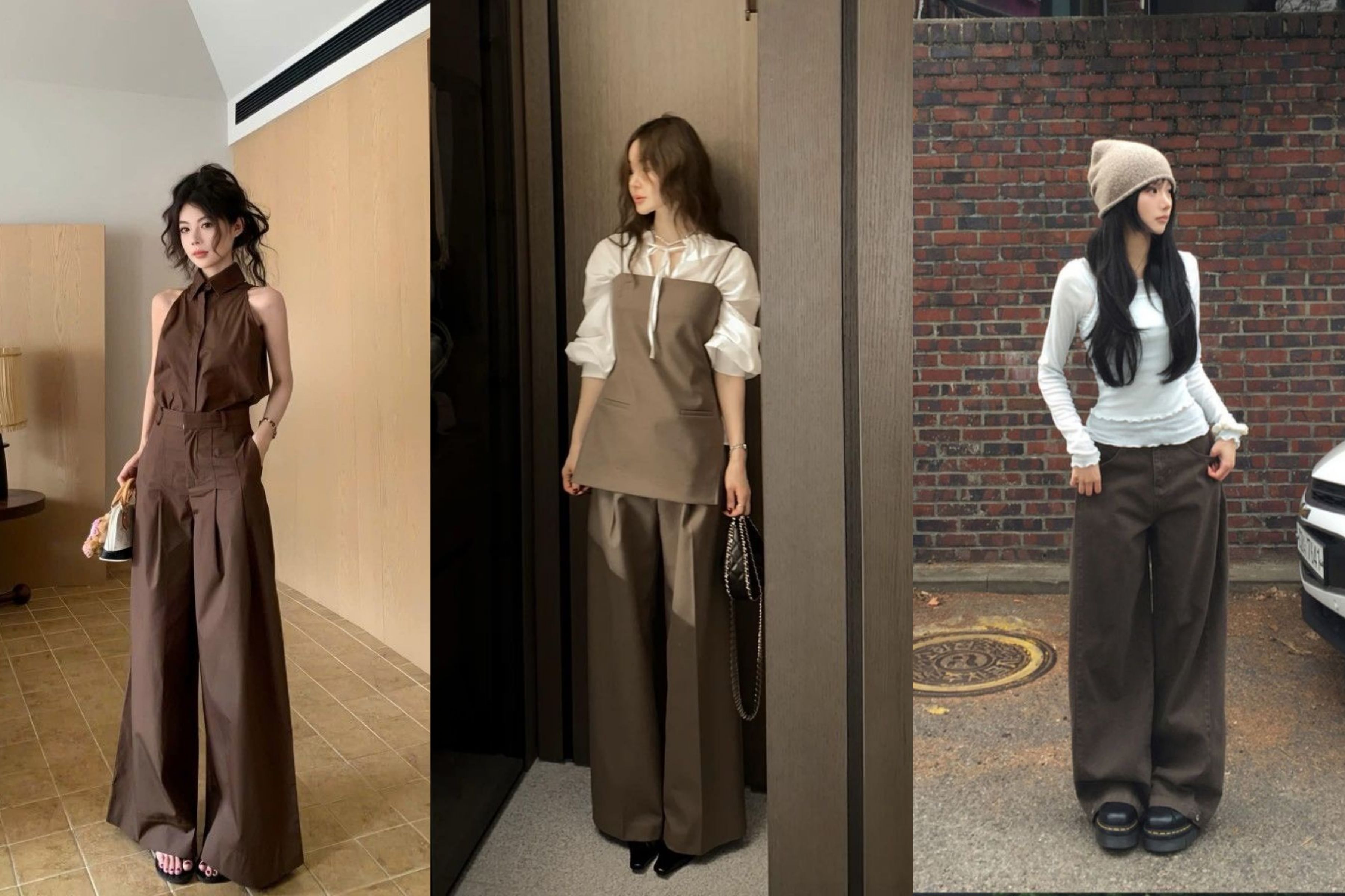 Đây là bộ đôi "ruột" của mọi cô nàng theo đuổi phong cách "sang trọng thầm lặng". Sự kết hợp giữa nâu và beige mang lại một vẻ ngoài tối giản, ấm áp và cực kỳ thời thượng. Một chiếc quần nâu ống rộng đi cùng áo len cashmere màu beige, hoặc một chiếc áo khoác nâu khoác ngoài set đồ màu kem. Vẻ đẹp đến từ sự hài hòa và chất liệu cao cấp.