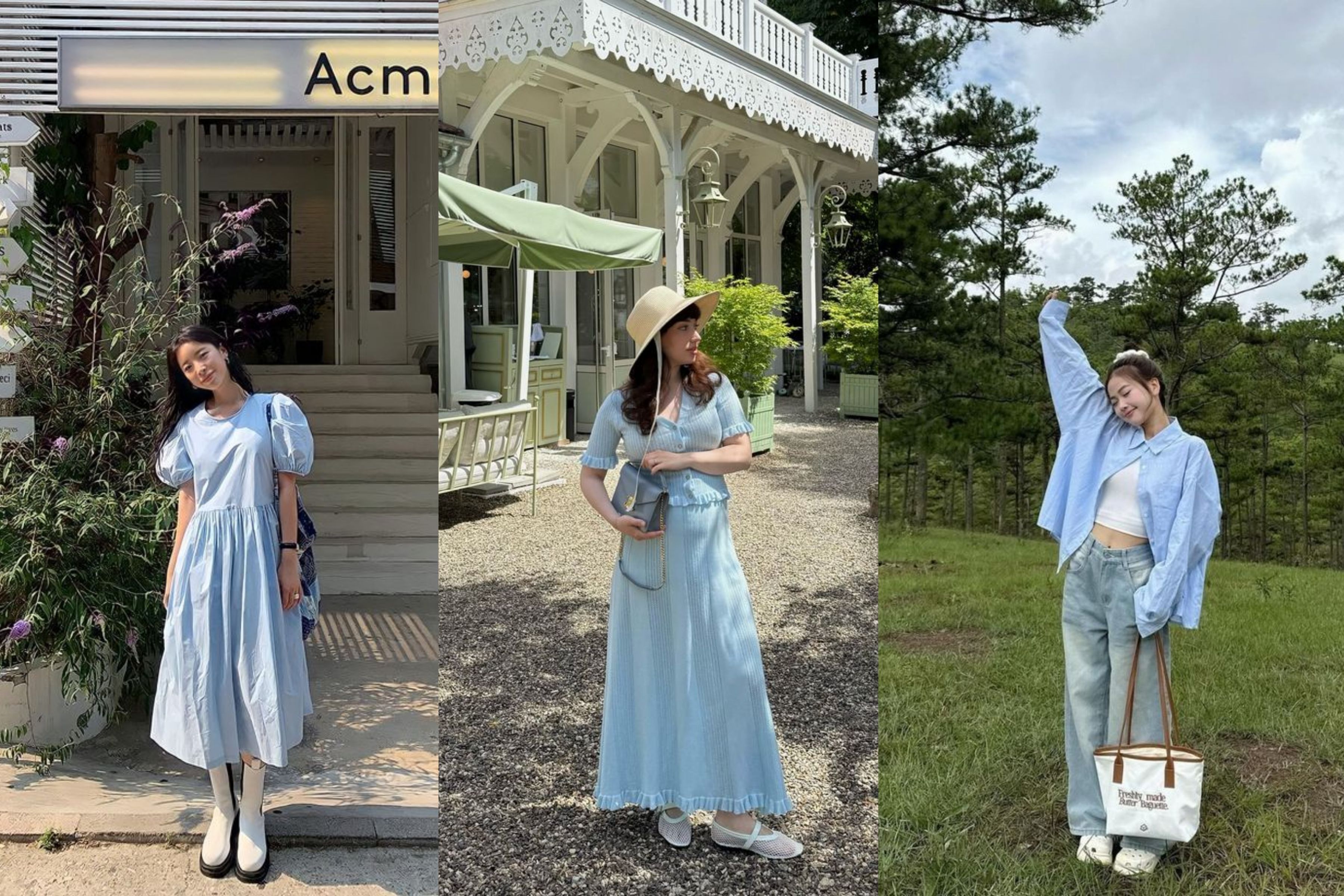 Sau những gam màu trầm, xanh da trời (Sky Blue) xuất hiện như một làn gió mới, mang theo nguồn năng lượng tươi trẻ và phóng khoáng. Một chiếc sơ mi oversized màu xanh da trời mặc theo kiểu giấu quần, hay một set đồ thể thao cùng tông chính là cách để bạn nổi bật một cách đầy sành điệu và không cần gắng gượng.