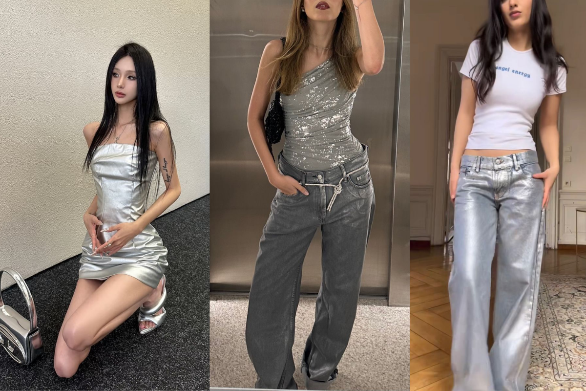 Ánh kim đã chính thức trở lại cuộc chơi, và bạc chính là vị vua. Từ những chiếc quần da bạc, váy hai dây lấp lánh cho đến những đôi boots metallic, sắc bạc mang đến một vẻ ngoài vị lai, thời thượng và cực kỳ "ăn ảnh". Đừng chỉ đợi đến tiệc tùng, hãy táo bạo diện một item màu bạc ngay trong những set đồ dạo phố ban ngày.