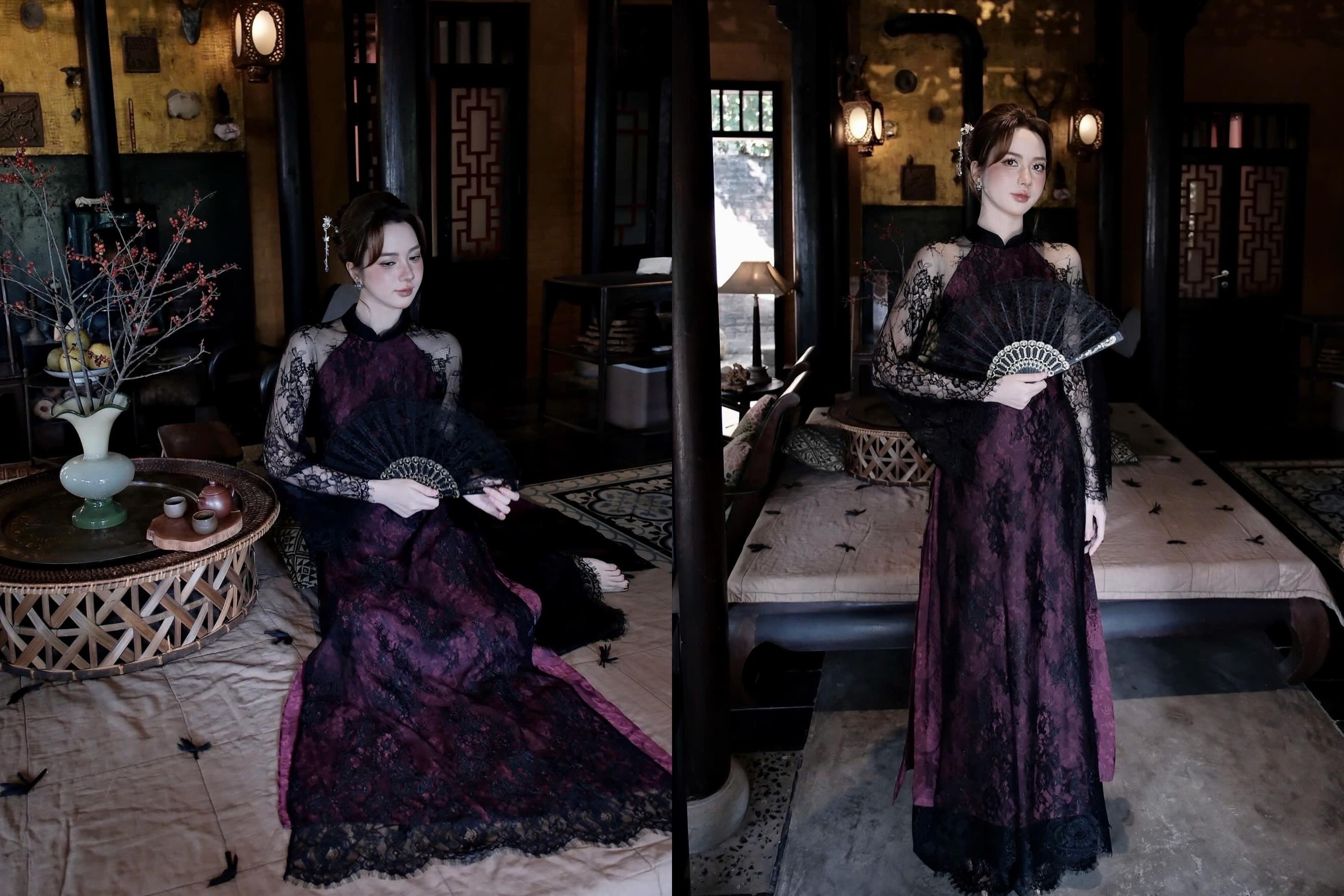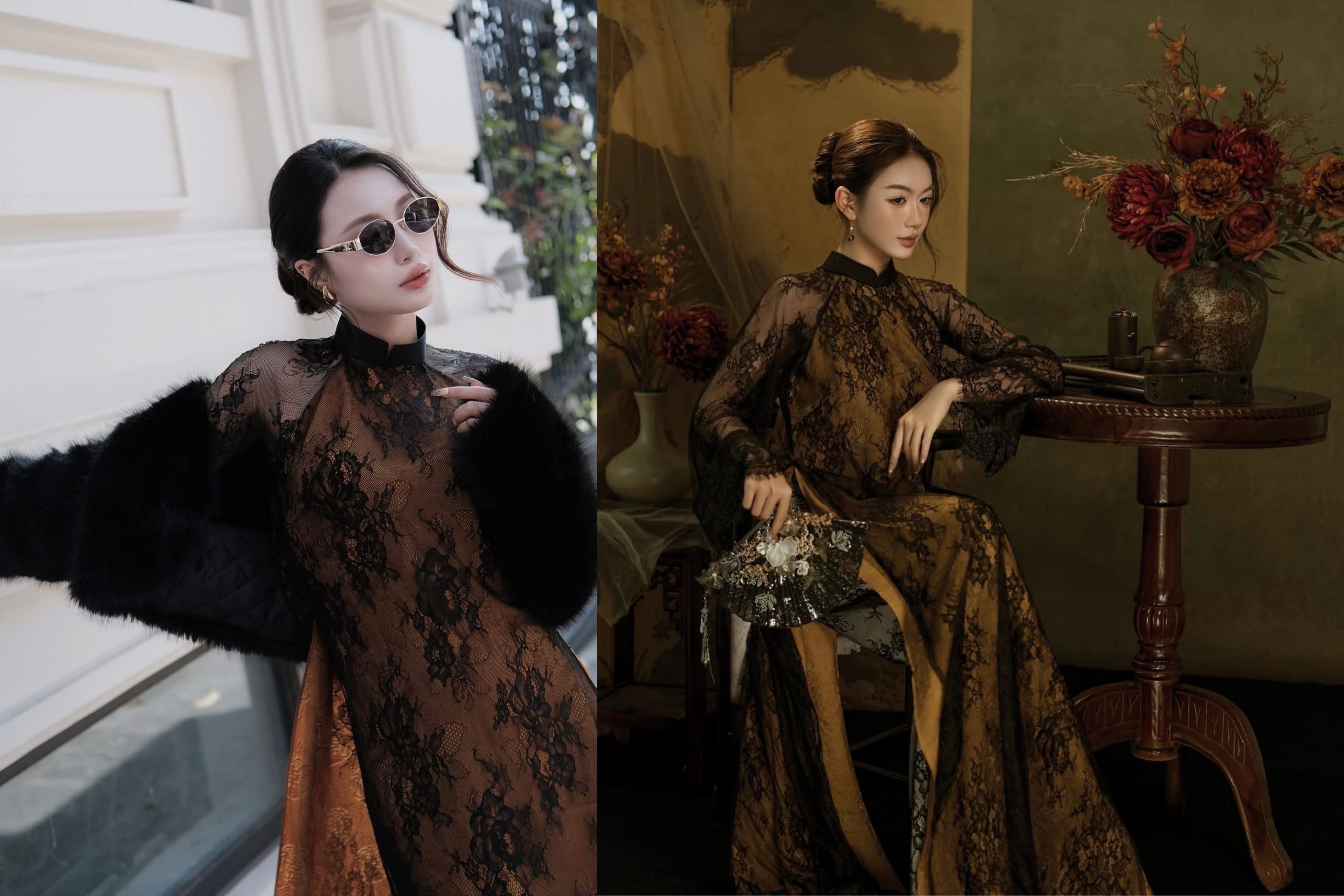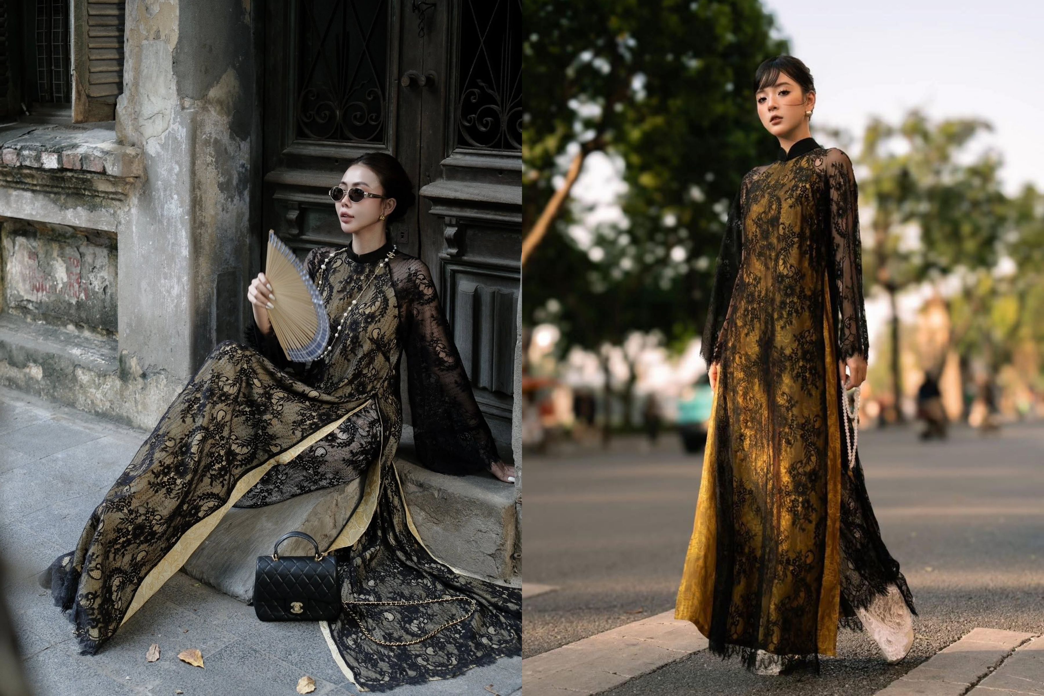 Chất liệu ren (Lace) chưa bao giờ lỗi mốt, nhưng khi khoác lên mình sắc đen huyền bí, nó trở thành vũ khí quyến rũ bậc nhất. Các thiết kế áo dài ren đen năm nay không mang cảm giác u tối mà ngược lại, cực kỳ thời thượng và ma mị.