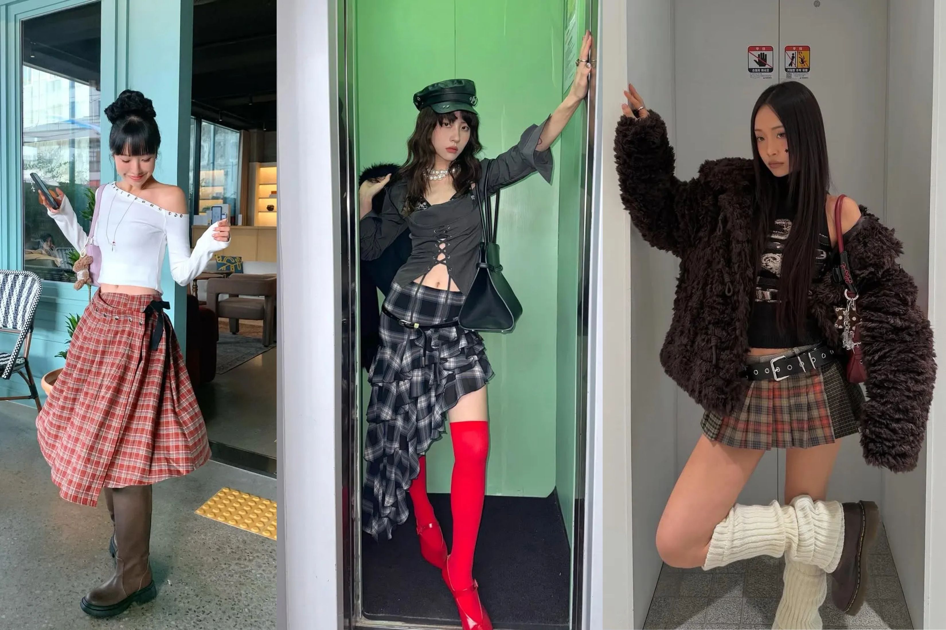 Đây là công thức thống trị mọi sàn diễn đường phố. Một chiếc chân váy mini kẻ caro, kết hợp cùng áo len oversized, chunky loafers và tất trắng cao cổ. Bản phối này mang đậm tinh thần "school girl" nổi loạn, vừa ngọt ngào, vừa cá tính. Đây là cách để "hack" tuổi và thể hiện một gu thẩm mỹ bắt trend.