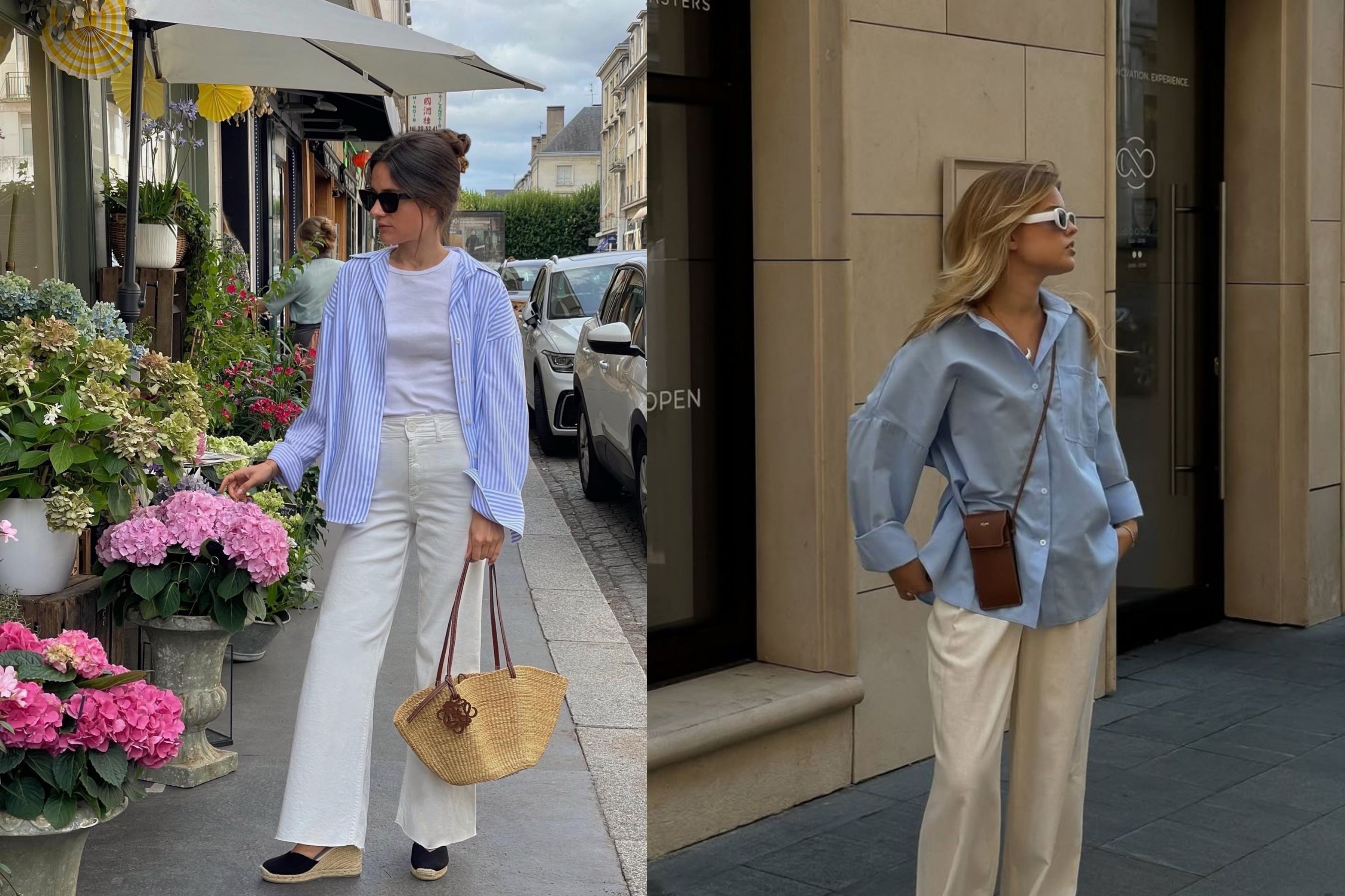 Sơ mi của gái Pháp không bao giờ quá vừa vặn. Họ yêu thích những phom dáng oversized, mang lại vẻ ngoài phóng khoáng. Một chiếc sơ mi trắng oversized, phanh vài chiếc cúc trên, sơ vin hờ hững cùng một chiếc quần short da hoặc quần jeans. Đây là định nghĩa của sự quyến rũ một cách bất cần.