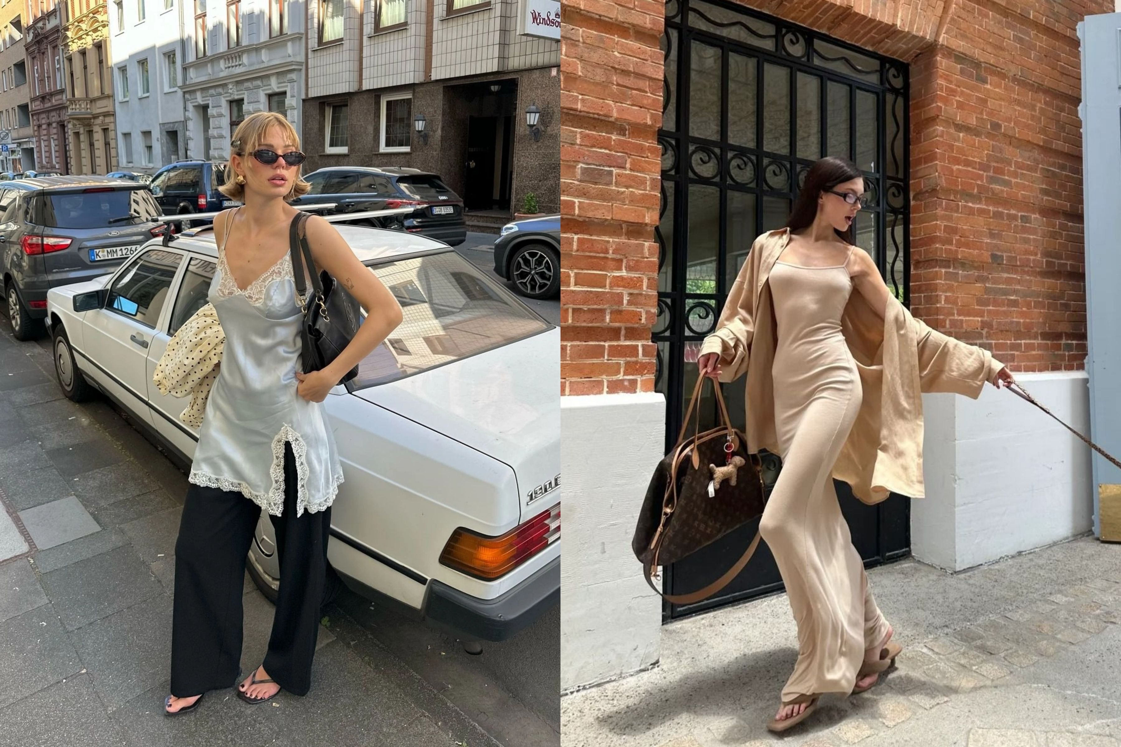 Những chiếc váy hai dây lụa, những bộ đồ satin viền ren (slip dress/pajama style) vẫn tiếp tục thống trị. Sức hút của nó nằm ở vẻ quyến rũ bất cần. Hãy "chơi" với các lớp layer: mặc nó bên ngoài một chiếc áo thun, bên dưới một chiếc áo khoác da, hay thậm chí là phối cùng quần jeans.