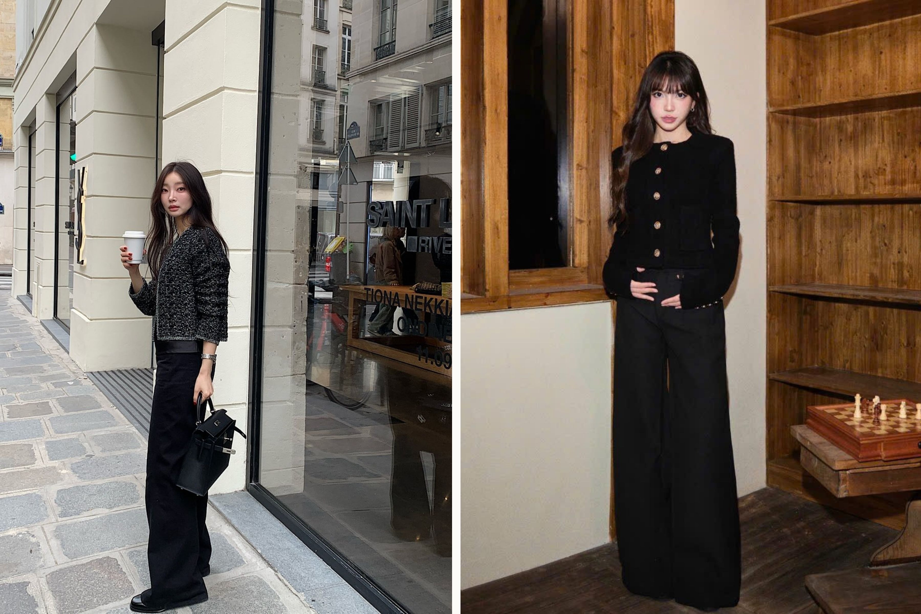 Đây là item linh hoạt bậc nhất, là "vũ khí" cho những ngày bạn không biết mặc gì nhưng vẫn muốn trông thật quyền lực. Quần ống rộng đen có thể đi từ văn phòng ra tiệc tối chỉ trong một nốt nhạc. Phối cùng áo thun cho vẻ ngoài casual, đi với sơ mi cho nét chỉn chu, hay táo bạo hơn với một chiếc bra top và blazer oversized. Mọi quy tắc đều có thể bị phá vỡ.