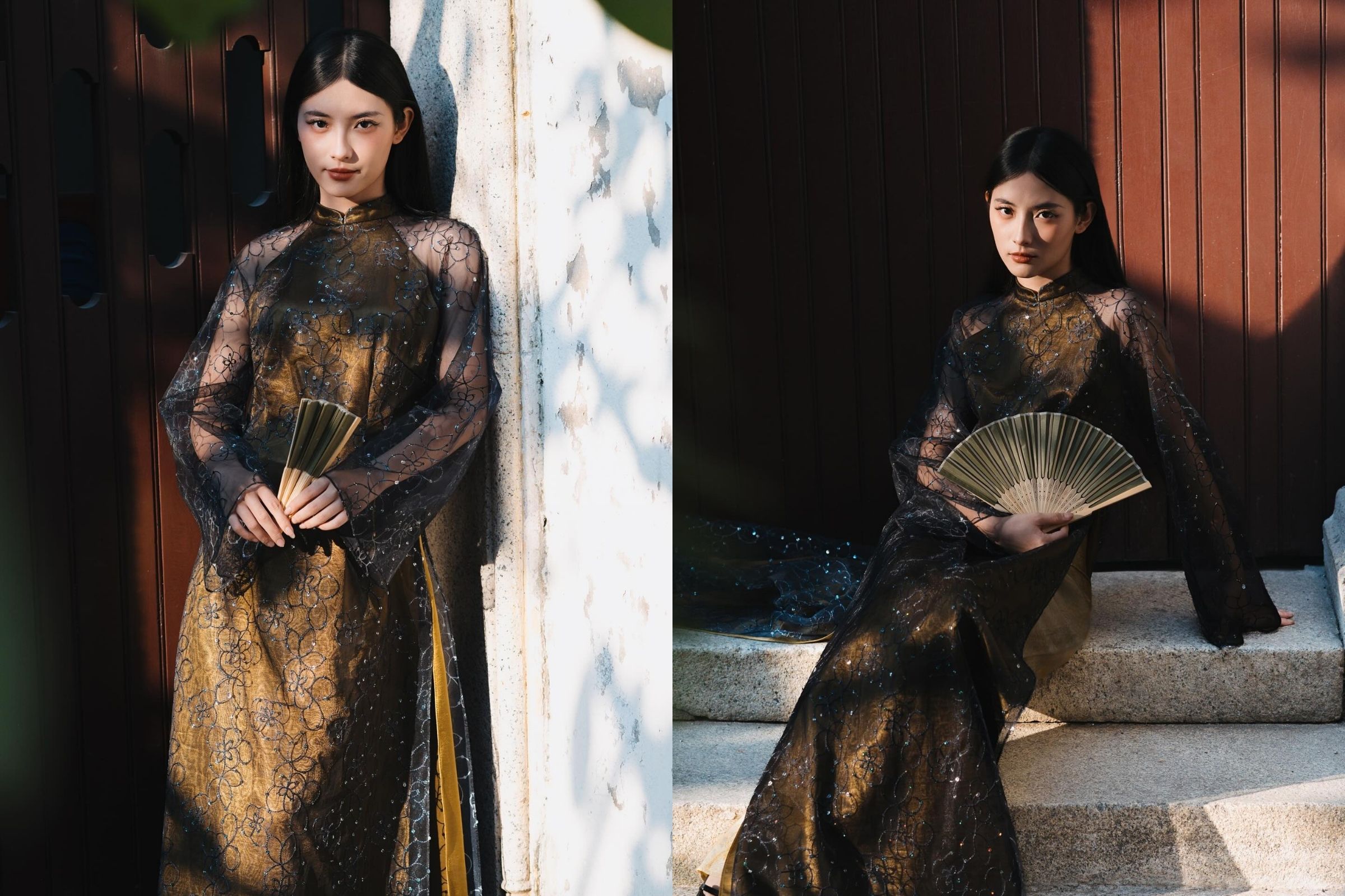 Áo dài đen của Posh không chỉ là một màu sắc, đó là một trò chơi của sự quyến rũ tinh tế. Những thiết kế trên nền vải ren hoặc voan, với những khoảng hở được tính toán kỹ lưỡng nơi cầu vai, tay áo hay tấm lưng, tạo ra một hiệu ứng xuyên thấu đầy mê hoặc. Nó không phô trương, mà là một lời thì thầm về sự gợi cảm, một vẻ đẹp sắc sảo và vô cùng hiện đại.