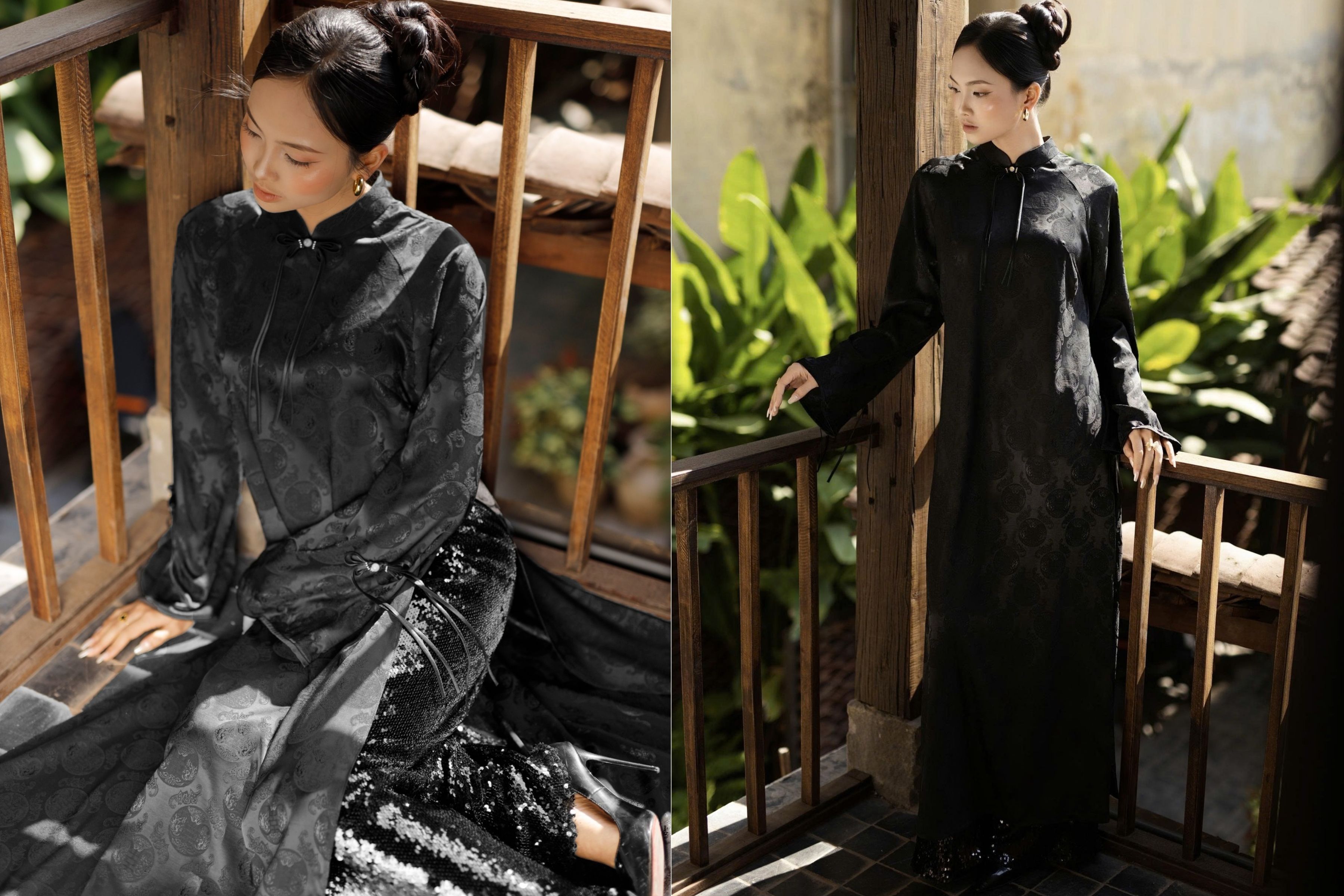 Thay vì những họa tiết hoa lá truyền thống, áo dài đen của năm nay là sân chơi của những họa tiết đương đại. Đó có thể là những đường kẻ sọc hình học, những họa tiết pop-art hay thậm chí là những biểu tượng của năm mới được cách điệu một cách đầy táo bạo. Đây là cách để bạn thể hiện cá tính và gu thẩm mỹ không thể bị trộn lẫn.