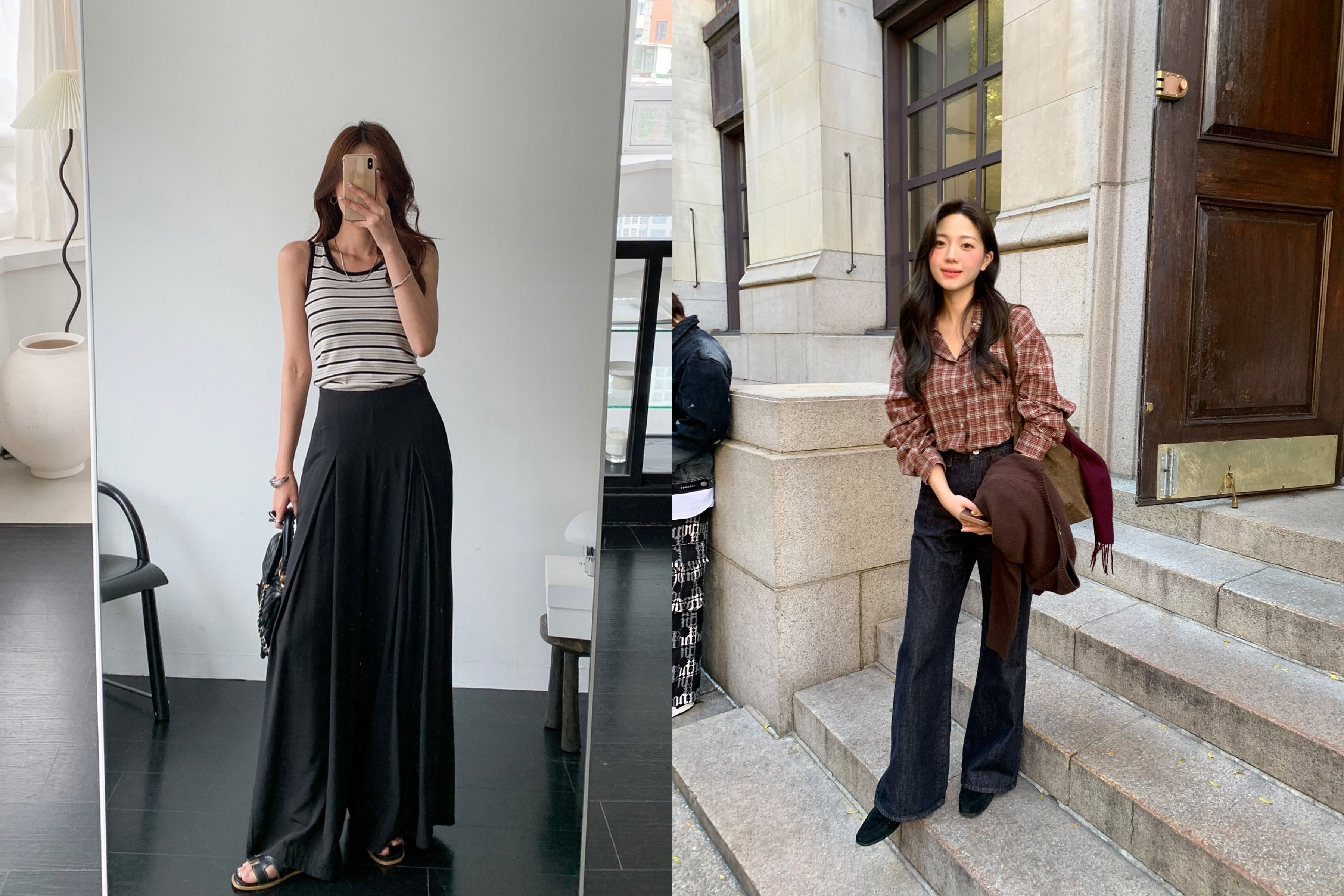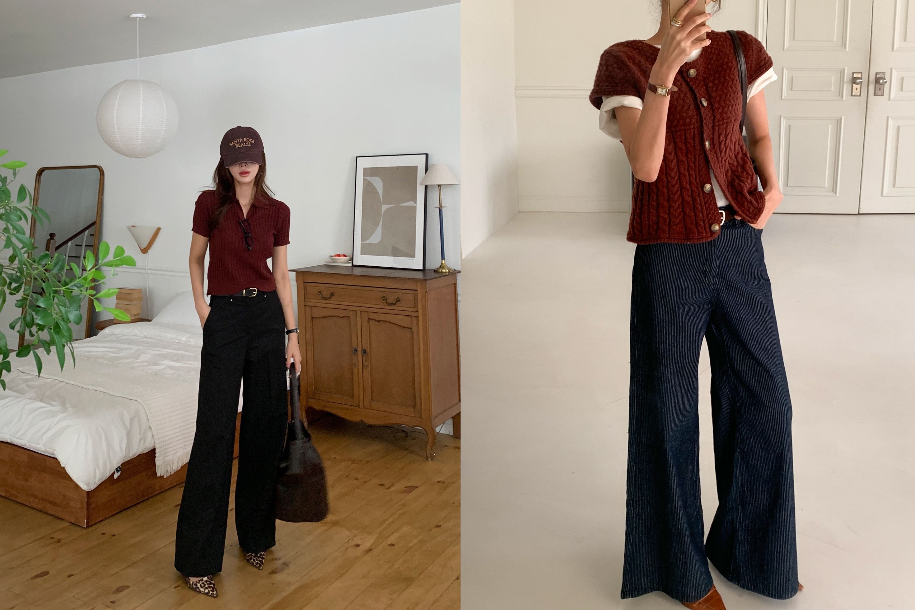 Khi đi cùng quần đen ống suông (Wide-leg) hoặc ống đứng, những gam màu như Xám Chì (Charcoal), Nâu Lạc Đà (Camel) hay Đỏ Rượu tạo nên một tổng thể vô cùng ấm áp, đẳng cấp và hiện đại.