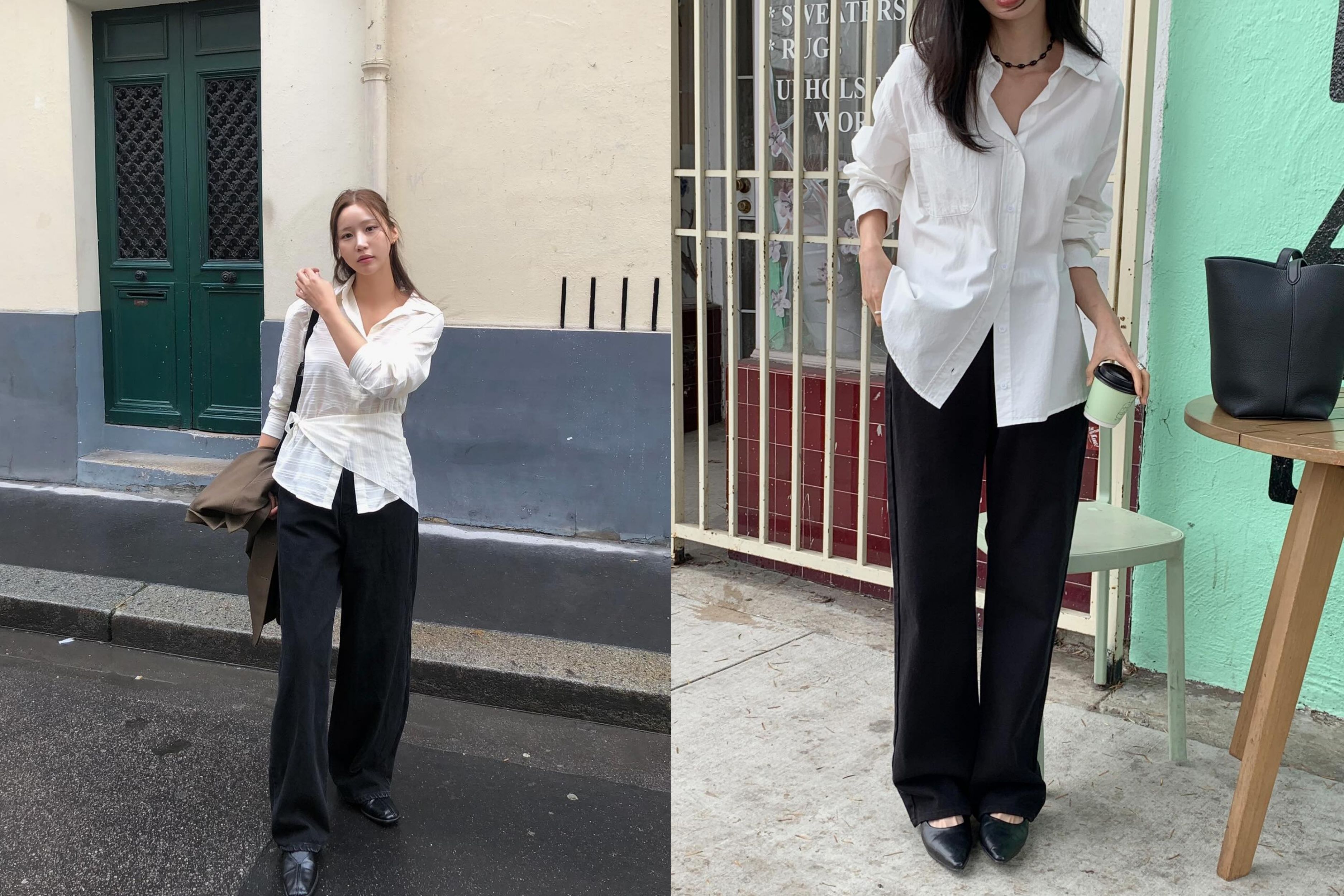 Sơ mi trắng (White Shirt) và Quần đen là cặp bài trùng của thời trang văn phòng. Để làm mới diện mạo này, Posh tập trung vào sự thay đổi trong phom dáng và chất liệu.