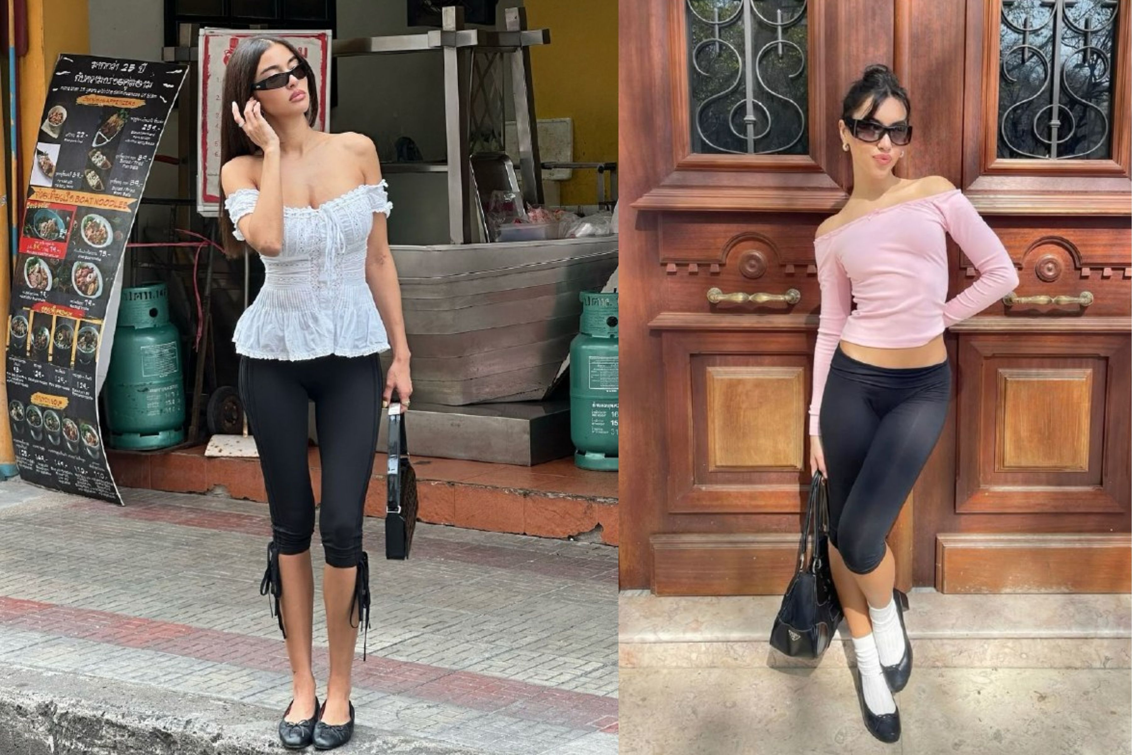 Điểm sáng giá nhất trong sự trở lại của Capri Pants chính là sự kết đôi cùng Giày búp bê (Ballet Flats). Sự kết hợp này mang đậm hơi thở "Ballet Core", tôn vinh vẻ đẹp mỏng manh nhưng đầy kiêu hãnh của phái nữ.