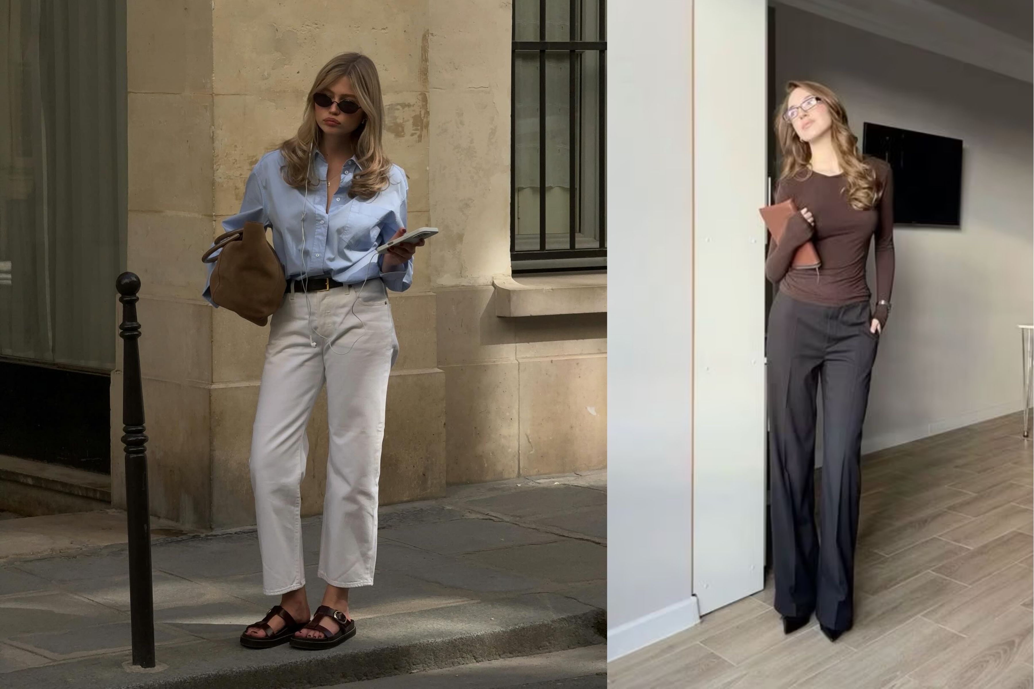 Quần ống đứng (Straight-leg Trousers) là thiết kế bắt buộc phải có để cân bằng sự mềm mại của trang phục hè. Phần cạp cao ôm trọn vòng eo và ống quần thả suông thẳng tắp tạo nên tỉ lệ cơ thể hoàn mỹ.