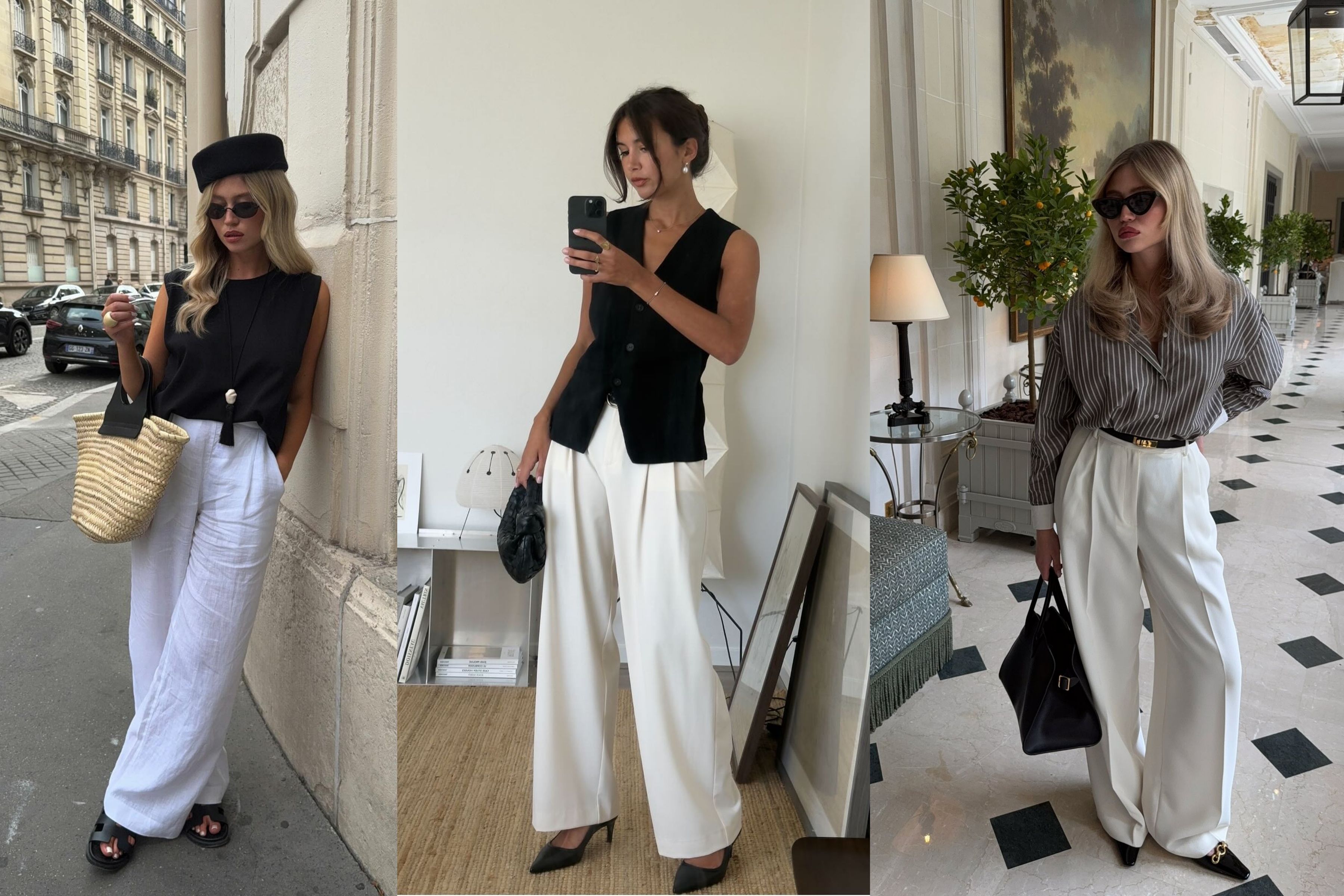 Không gì miêu tả mùa hè trọn vẹn hơn một chiếc quần ống suông màu Trắng Ngà (Ivory Wide-Leg Pants). Gam màu sáng phản chiếu ánh nắng, mang lại vẻ đẹp tinh khôi và lộng lẫy.
