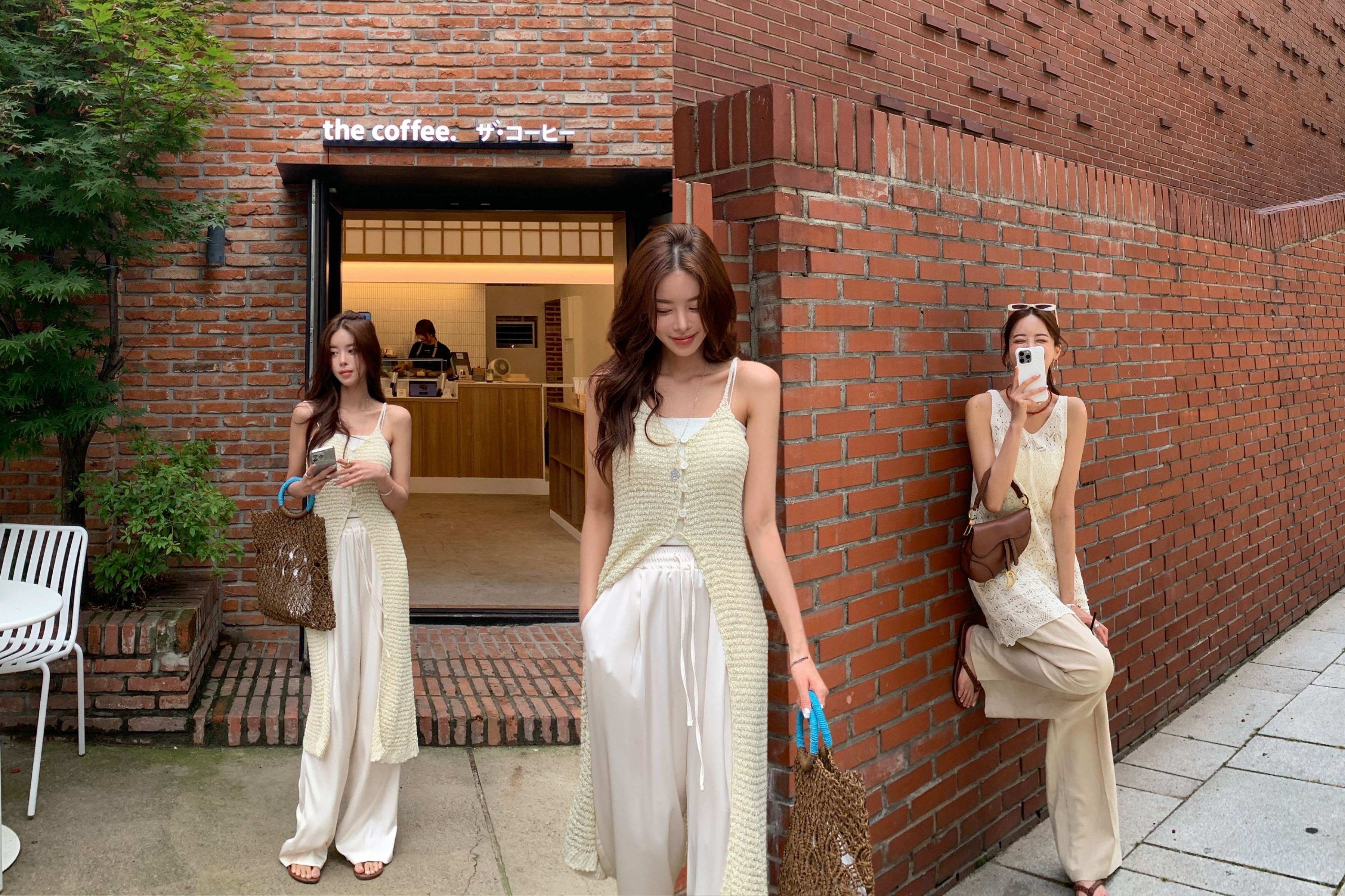 Sự mong manh của dây áo lụa vắt qua bờ vai thon, kết hợp cùng Quần ống rộng Linen (Đũi tự nhiên) thô mộc tạo nên một diện mạo "Casual-Luxe" (Sang trọng đời thường) vô cùng cuốn hút. Để tăng tính ứng dụng và độ che phủ, hãy khoác hờ một chiếc Áo Sơ Mi Linen xuyên thấu (Sheer). Thêm kính râm bản to, bạn đã hoàn thiện phong cách "Jet-set" thượng lưu.