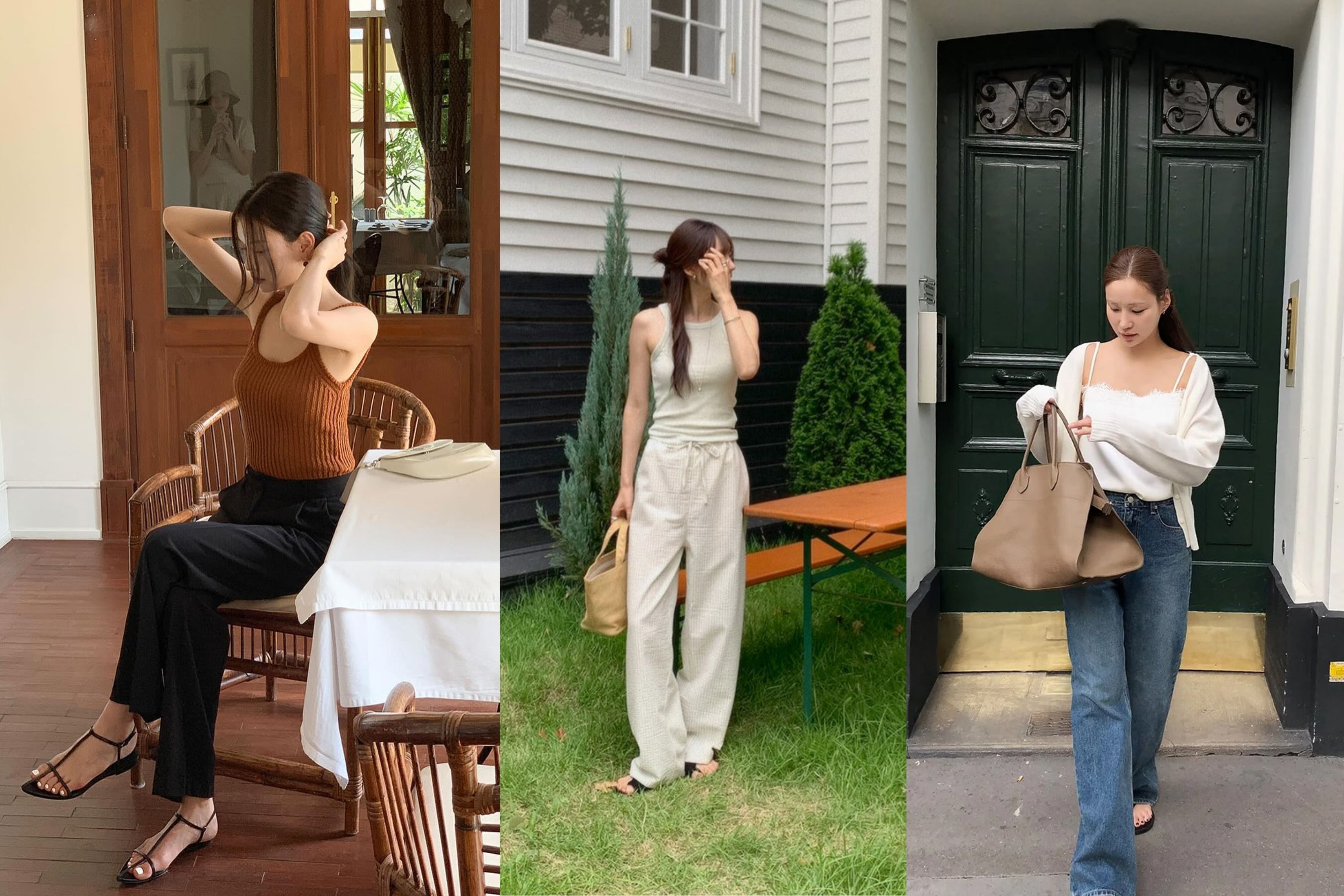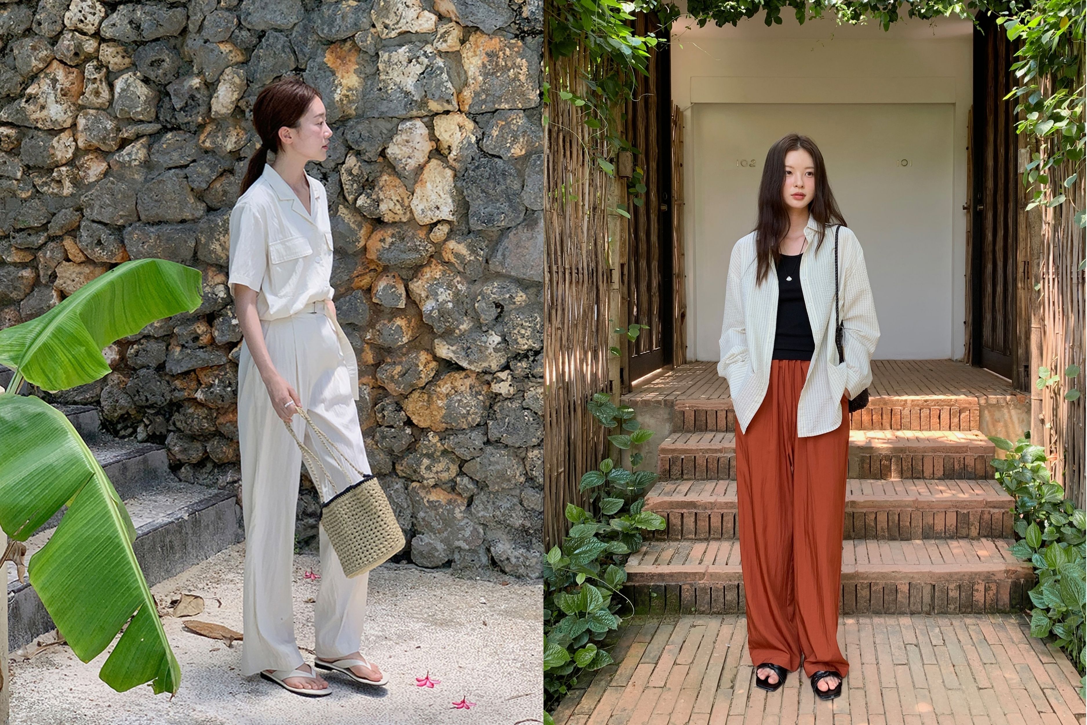 Một chiếc áo hai dây lụa bản to, ôm hờ vòng một, phối cùng quần ống rộng chất liệu Linen thô mộc tạo nên một cấu trúc thị giác cân bằng hoàn mỹ. Để tăng thêm phần thượng lưu cho phong cách Resort-wear, hãy khoác hờ một chiếc Blazer lụa hoặc sơ mi mỏng xuyên thấu (Sheer).